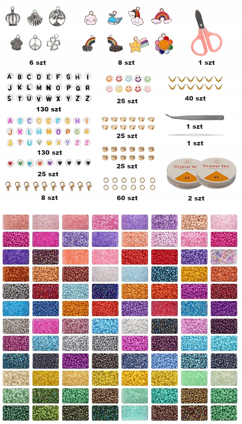 ВЕЛИЧЕЗНИЙ НАБІР НАМИСТИН ДЛЯ ВИГОТОВЛЕННЯ БРАСЛЕТІВ, КОЛЬОРОВИХ ЛУКВ, УСМІШОК, ПІДВІСОК