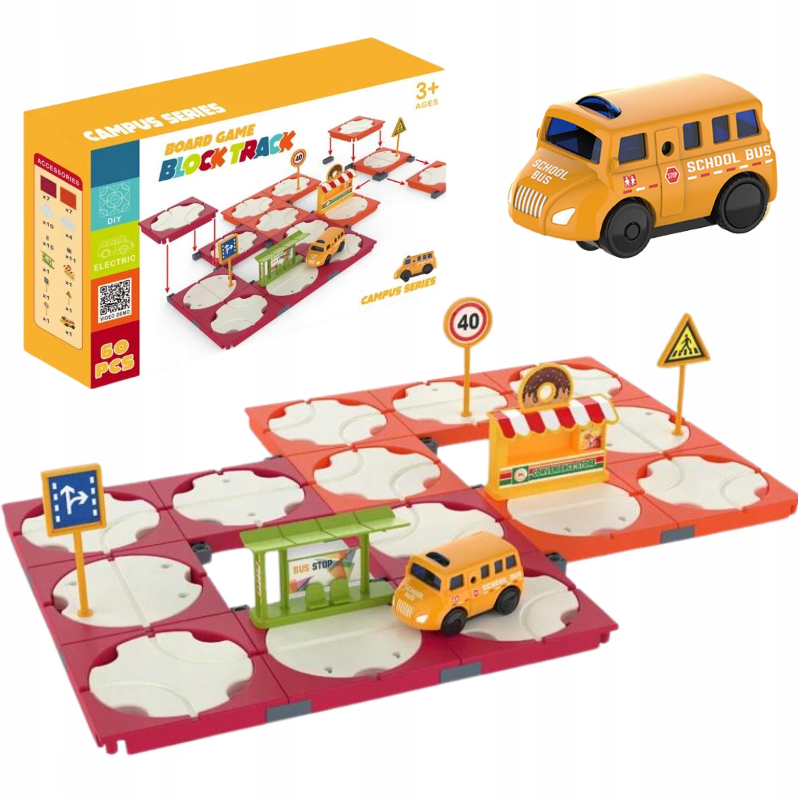 ZESTAW LABIRYNT DROGOWY BUDOWANIE TRASY AUTOBUS PRZYSTANEK ZNAKI DROGOWE