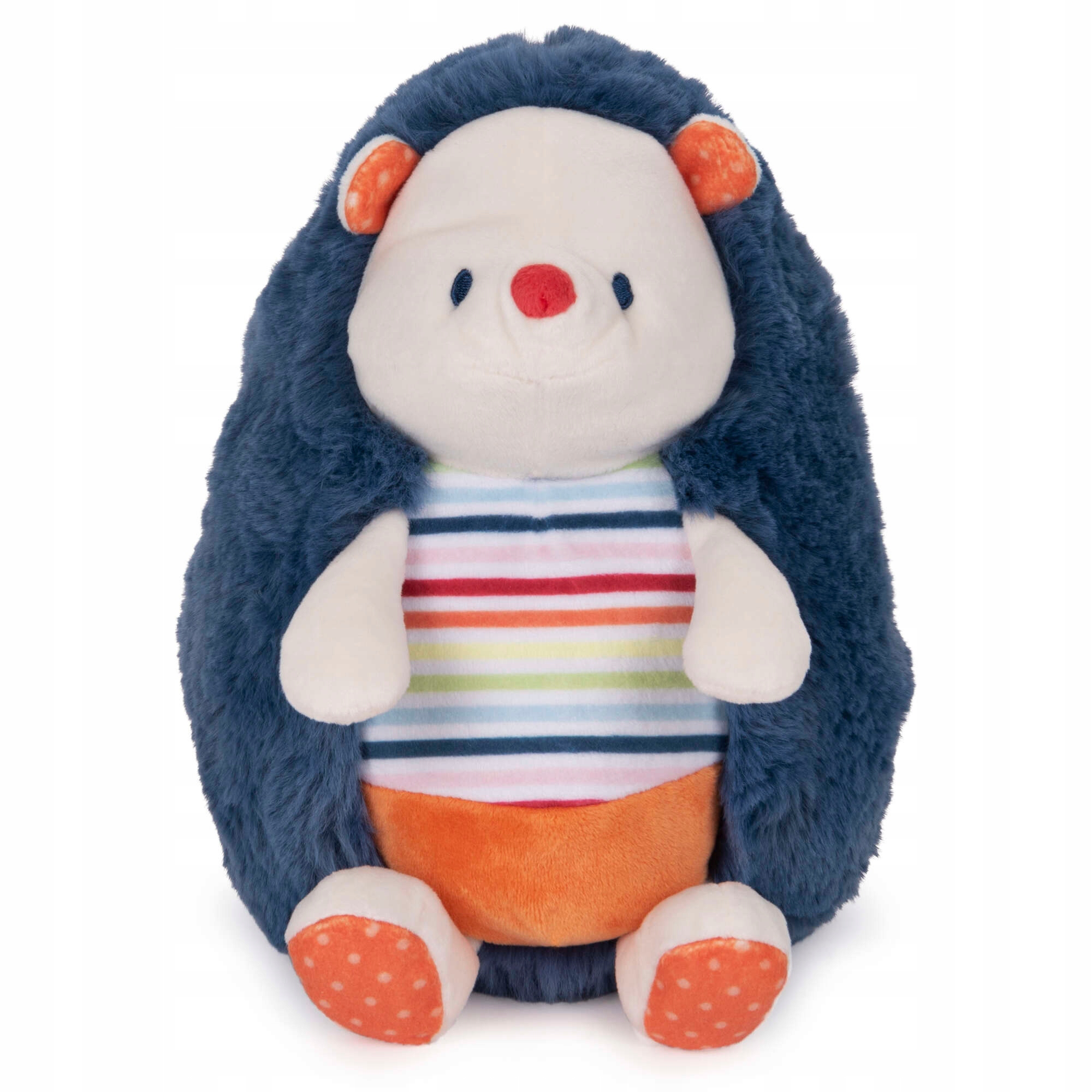 Їжак має темно-блакитне приємне на дотик хутро. У їжачка різнокольорові смужки та помаранчеві шорти на животі. На нижніх лапках їжачка знаходяться кульки кольору гороху, які стануть чудовим тактильним досвідом для малюків і дозволять їм розпізнавати нові поверхні. Талісман із червоним носом і темно-синіми вишитими очима.