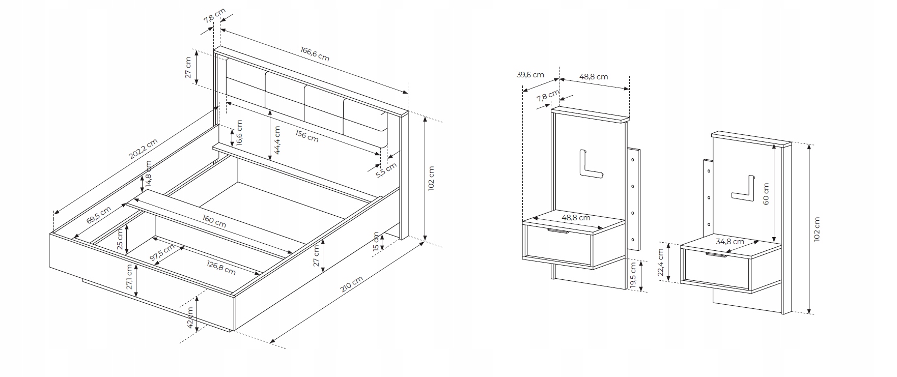 * дві тумбочки з боків ліжка з LED підсвічуванням