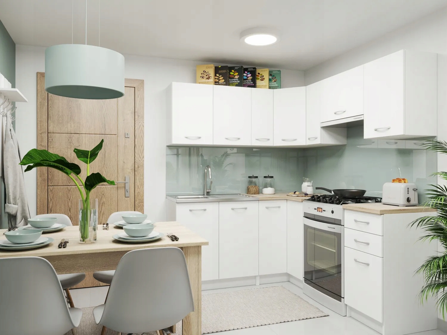 Zestaw mebli kuchennych Nicea Narożne Białe + BLAT