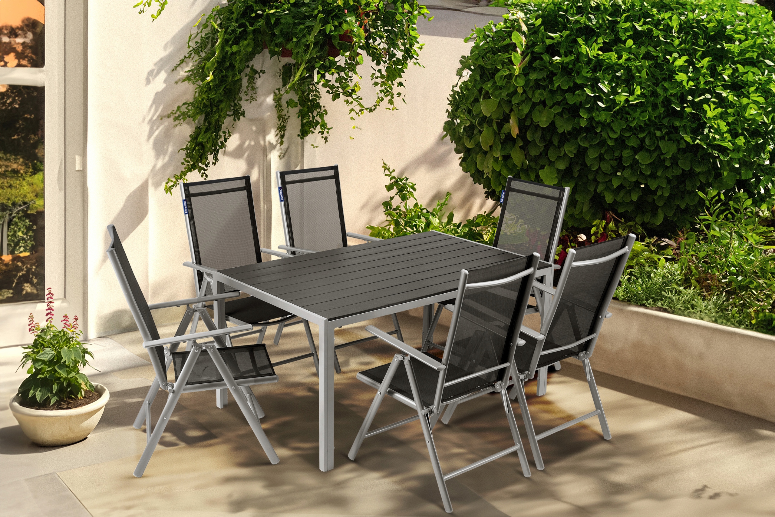Набір садових меблів EPIGE - ідеальна пропозиція для людей, які хочуть комфортно та стильно проводити час на свіжому повітрі. Стільці виготовлені з міцного та стійкого до погодних умов матеріалу, що забезпечить їх довгий термін служби незалежно від погодних умов.