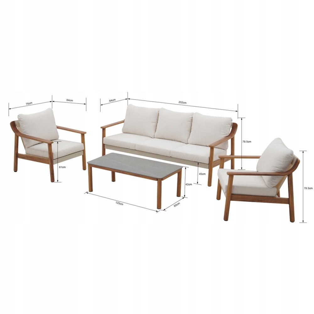 Комплект садових меблів, що складається зі столу, дивана та крісел, є ідеальним вибором для компанії з п'яти осіб, які шукають гармонійного поєднання сучасного дизайн, функціональність і довговічність. Цей сучасний гарнітур не лише забезпечує зручне місце для зустрічей на відкритому повітрі, але й є естетичною прикрасою для саду чи тераси.