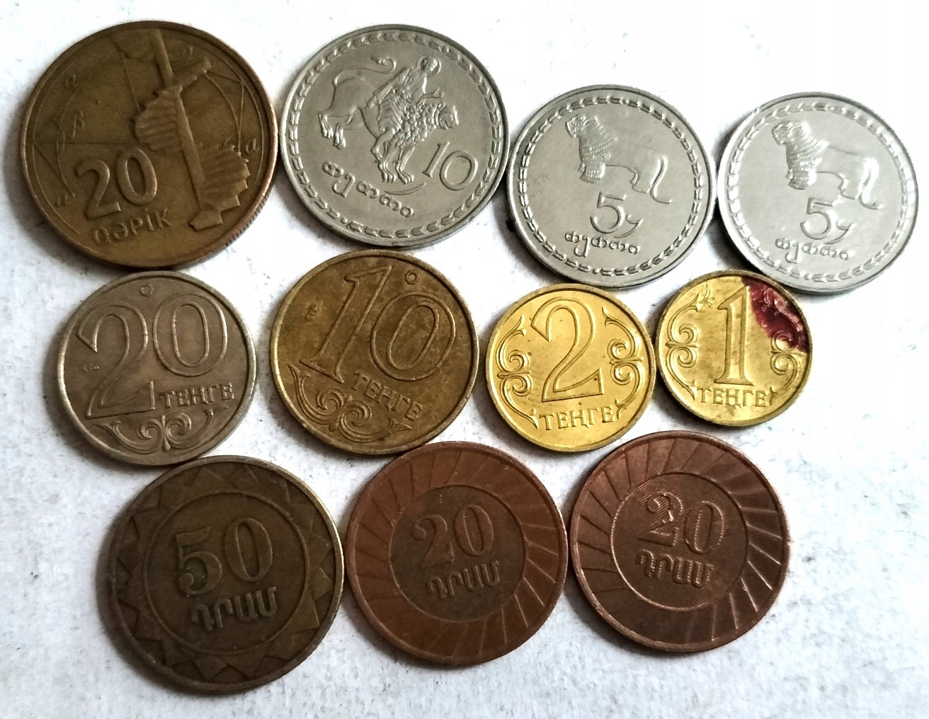 zestaw monet Armenia Gruzja Azerbejdżan Kazachstan 11 szt.