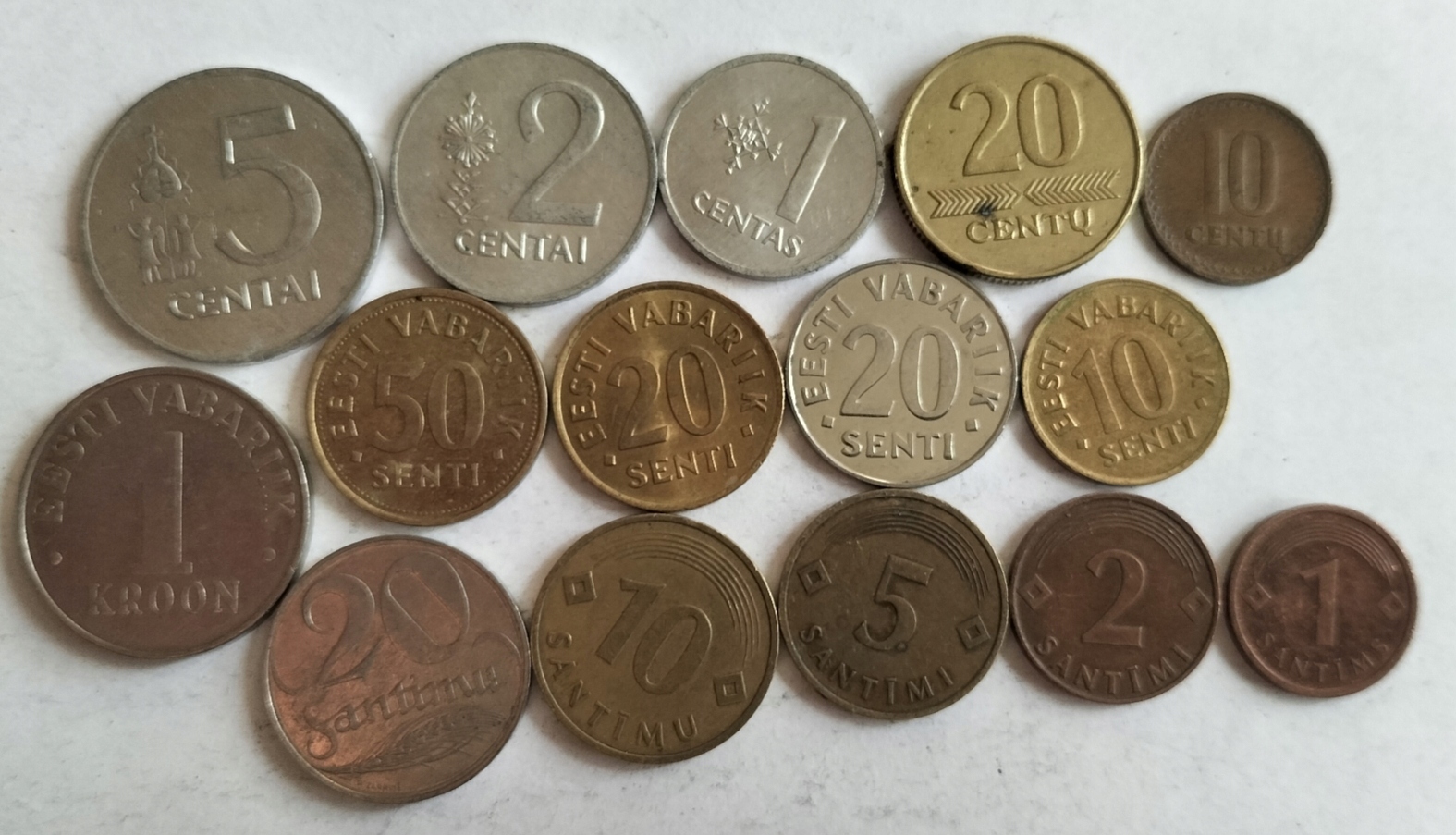 zestaw monet Litwa Łotwa Estonia 15 szt.