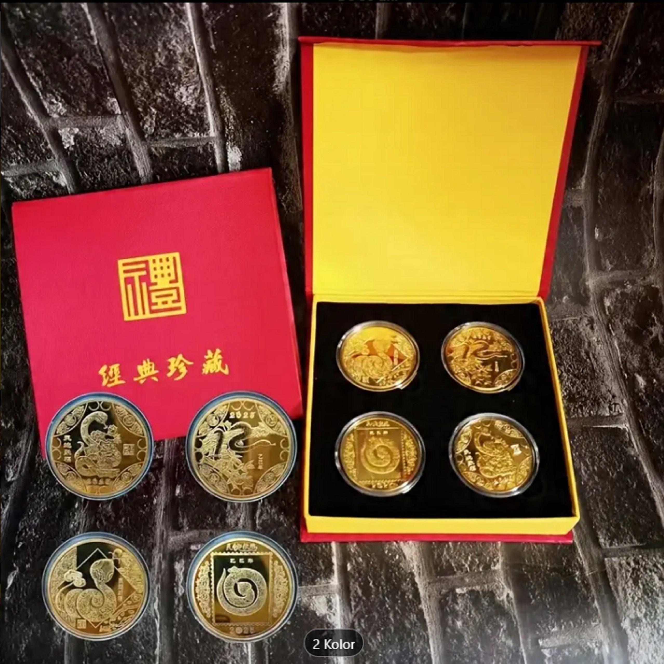 Zestaw monet pamiątkowych ROK WĘŻA 4szt. pudełko prezent replika PUDEŁKO