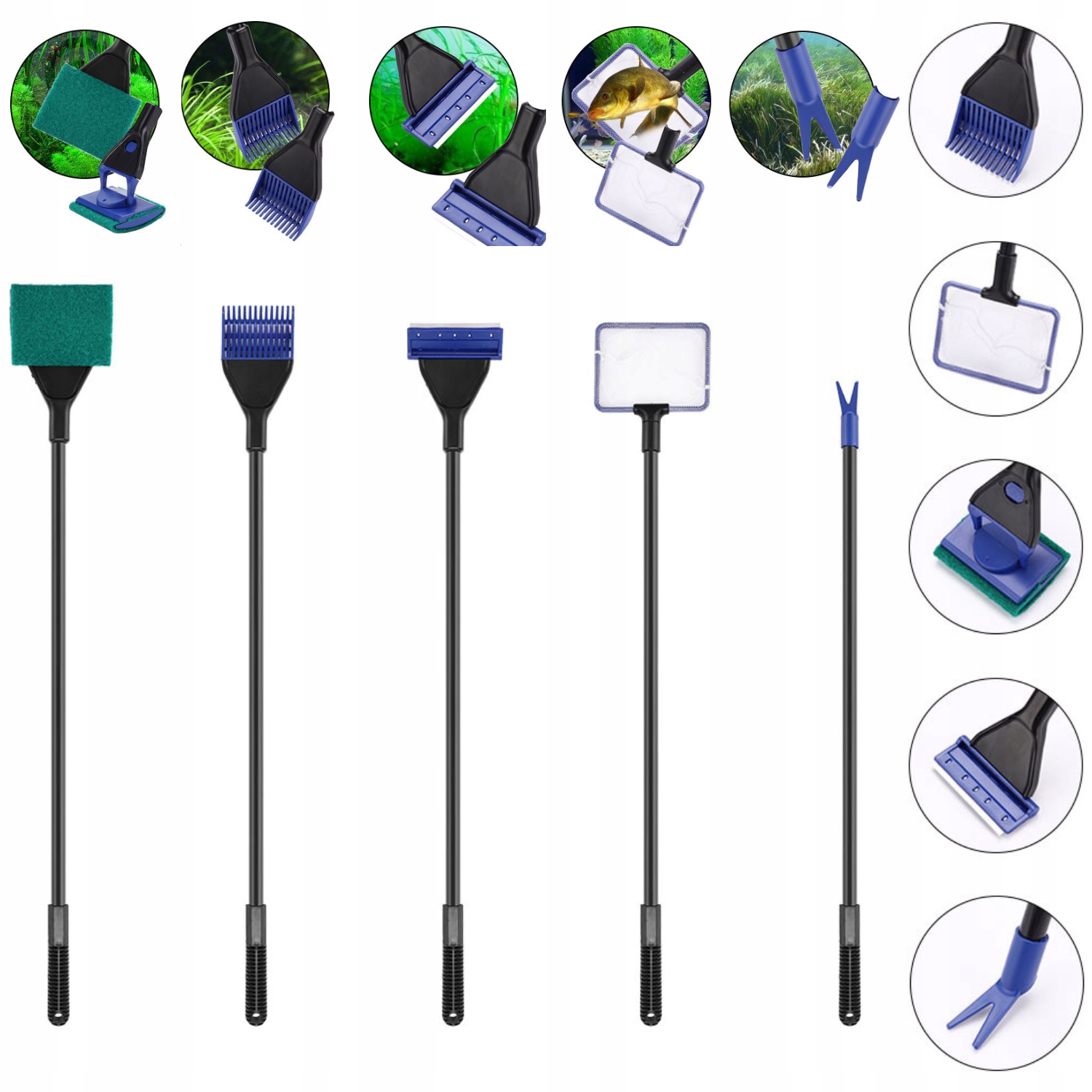 ZESTAW NARZĘDZI DO AKWARIUM 5W1 CZYŚCIK SKROBAK SZCZYPCE GRABKI SIATKA