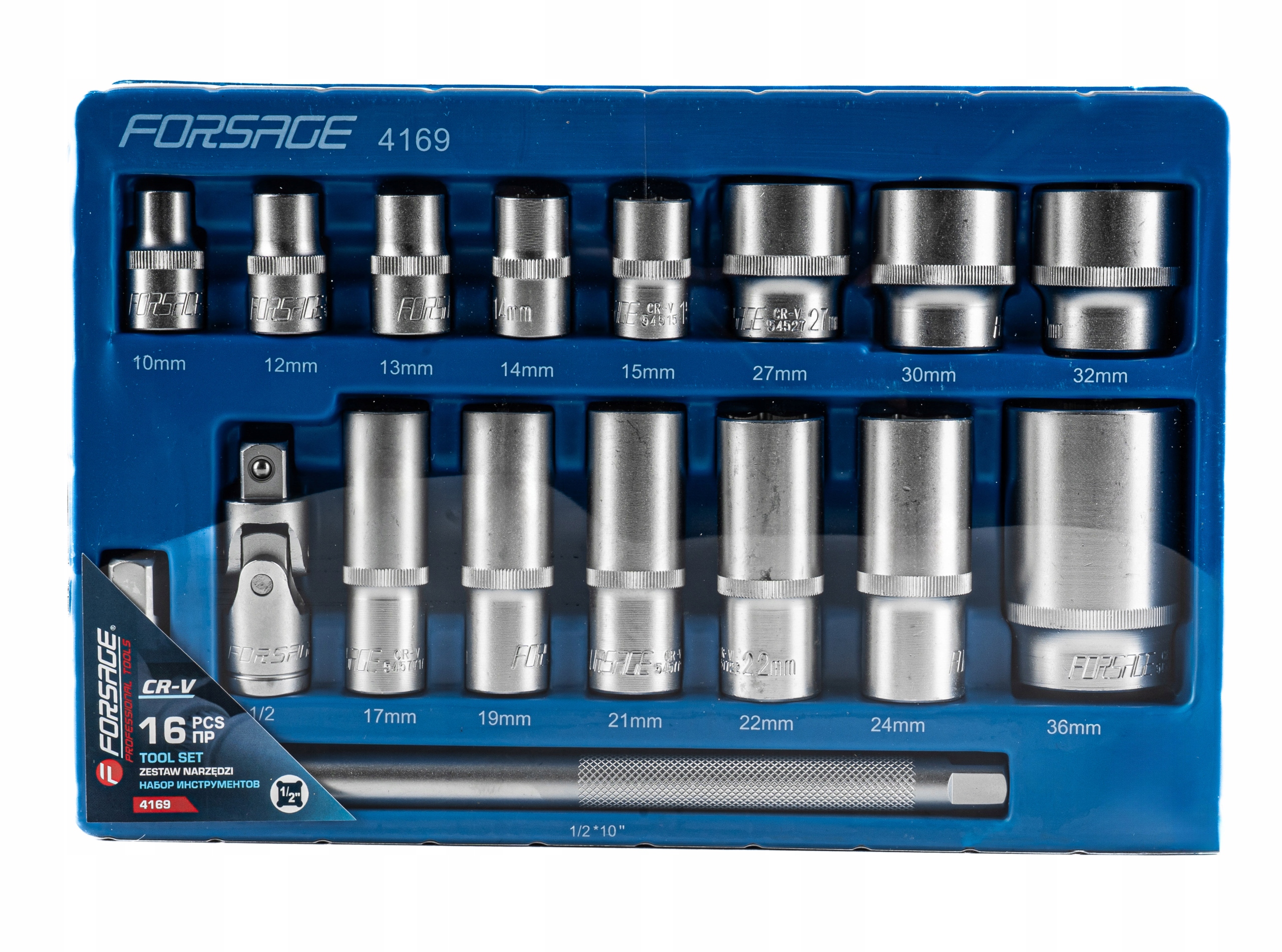 ZESTAW NARZĘDZI NASADEK UDAROWYCH KOMPLET UDAROWY 1/2" 10-36MM STAL CR-V