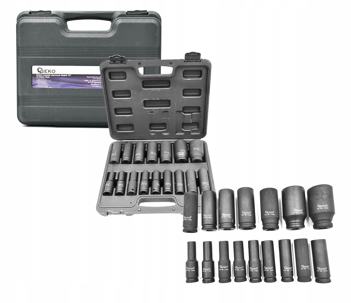 Набір із 16 6-точкових ударних головок 1/2" 10-32 мм від відомого бренду інструментів GEKO.