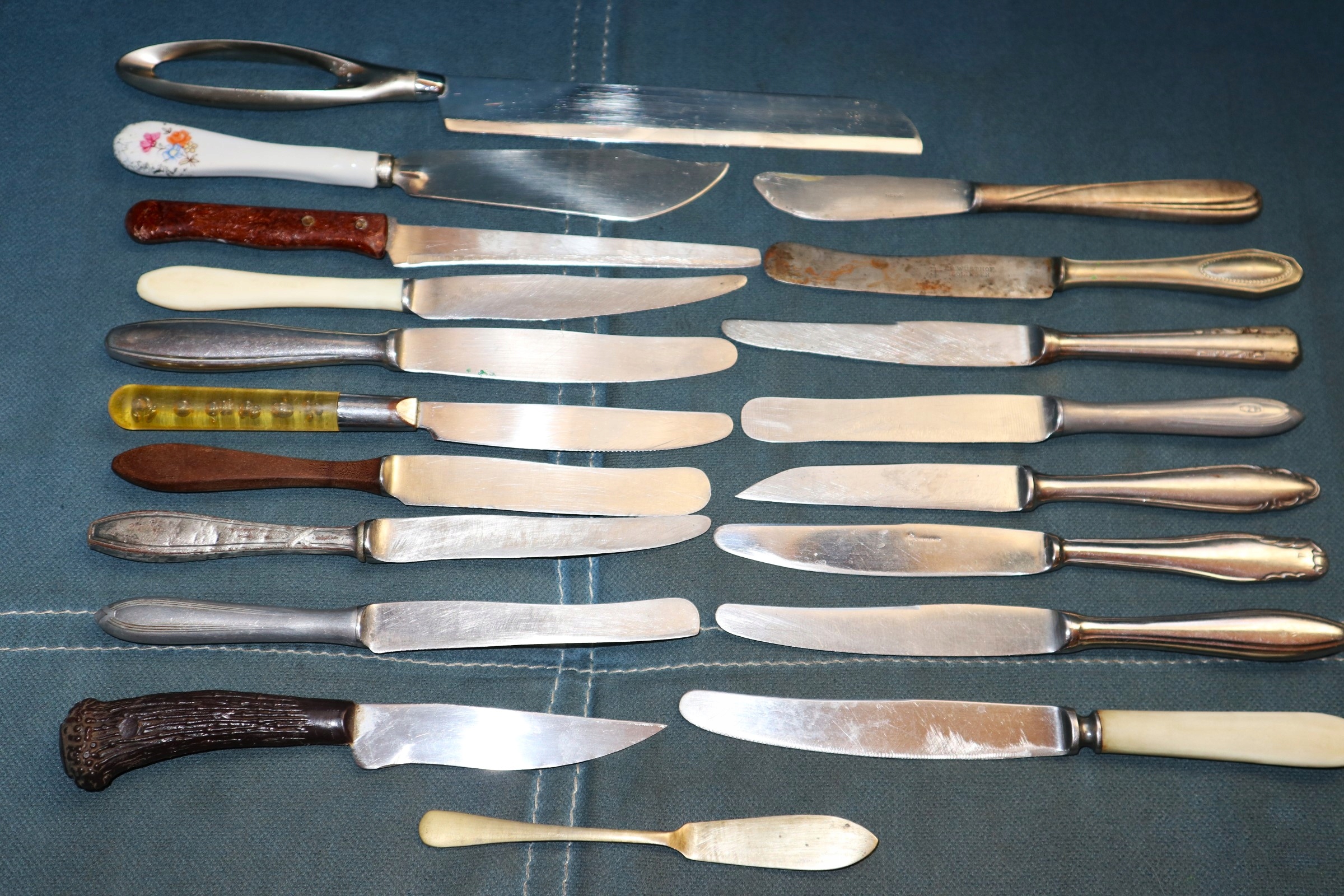 НАБІР З 19 РІЗНИХ НОЖІВ ДЛЯ РІЗАННЯ, РОЗПЛАЧАННЯ, РИБИ. ЦІНА ВКАЗАНА ЗА ЦІЛІЙ. СТАН ЯК ПОКАЗАНО НА ФОТО, БУДЬ ЛАСКА, УВАЖНО ПОДИВІТЬСЯ НА ФОТОГРАФІЇ ПЕРЕД РОБОТОЮ СТАВКИ. ВДАЧИХ ЦІНОК