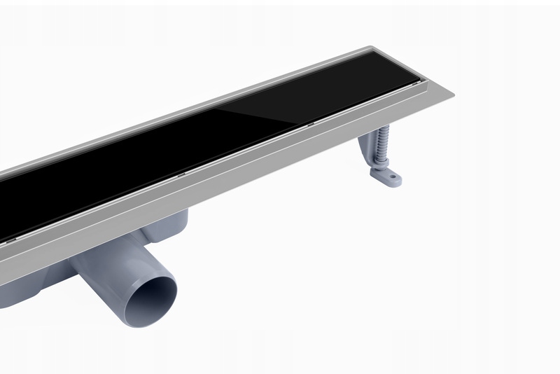 Zestaw odpływ liniowy ruszt SZKŁO CZARNE 90 cm syfon fi 50 + SUCHY SYFON