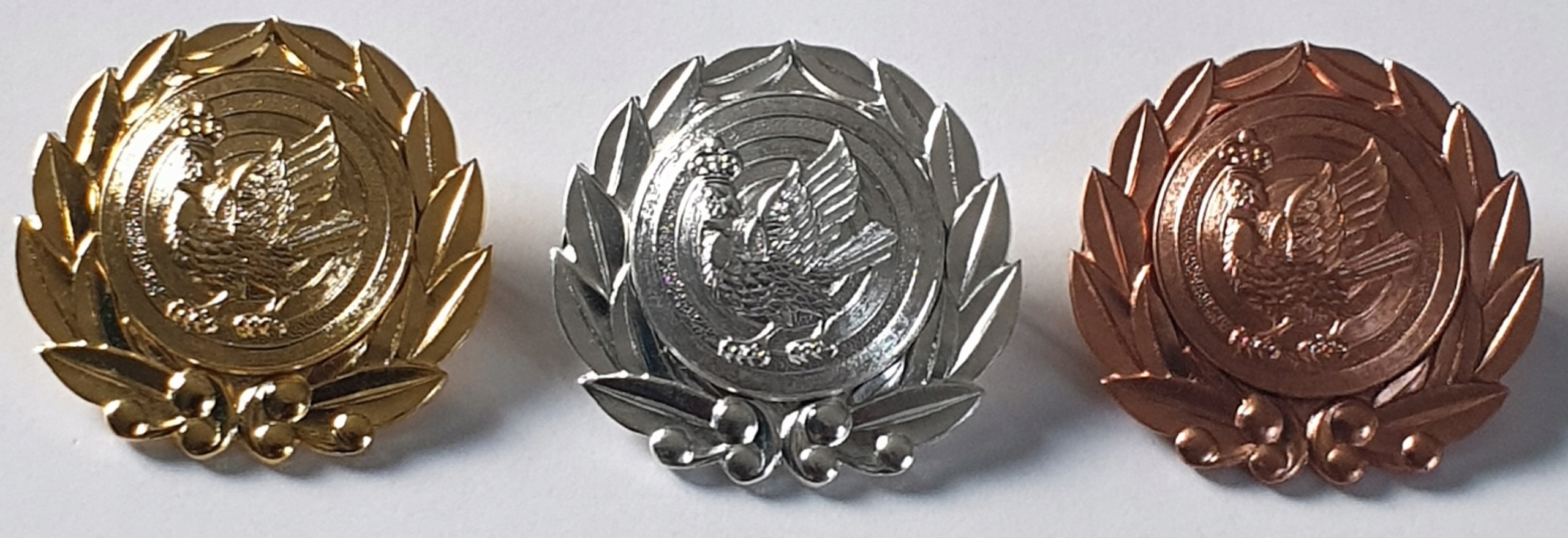 ZESTAW ODZNAK BRACTWA KURKOWEGO ZŁOTA,SREBRNA BRĄZOWA - 3 SZTUKI - KOMPLET