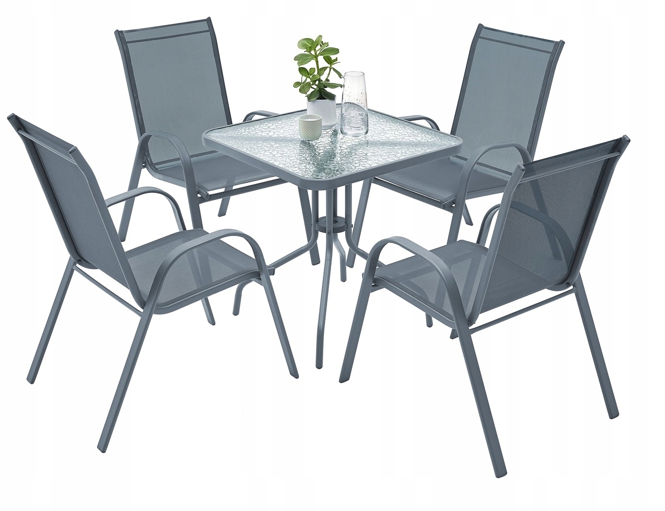 ZESTAW OGRODOWY SZKLANY STÓŁ 4K MEBLE OGRODOWE