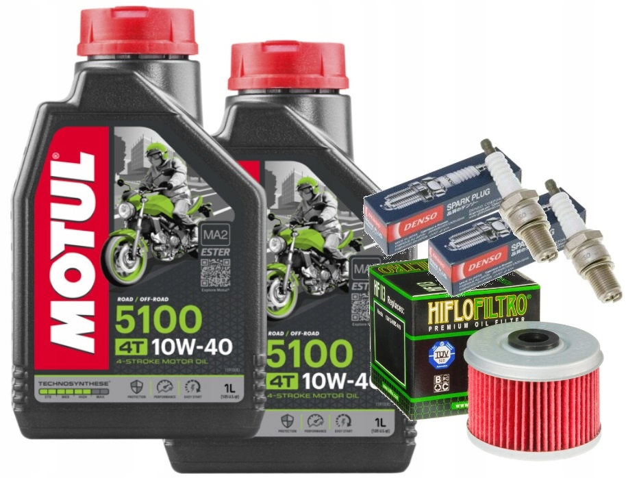 ZESTAW OLEJ MOTUL 5100 10W40 2L FILTR HF113 ŚWIECE HONDA VT125 Shadow 99-08