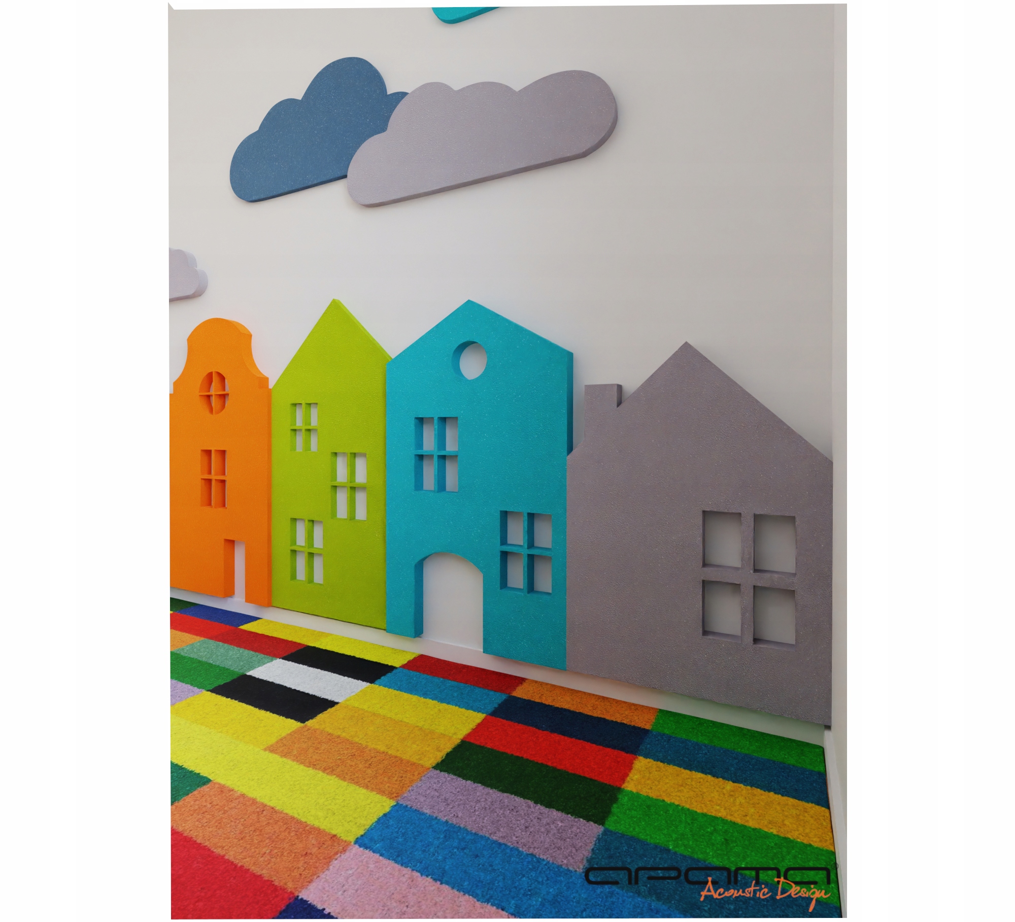 Ми пропонуємо вам набір унікальних акустичних звукоізоляційних панелей, що складається з чотирьох чарівних пінопластових будиночків - ідеальне рішення для покращення якості звуку в кімнаті вашої дитини.