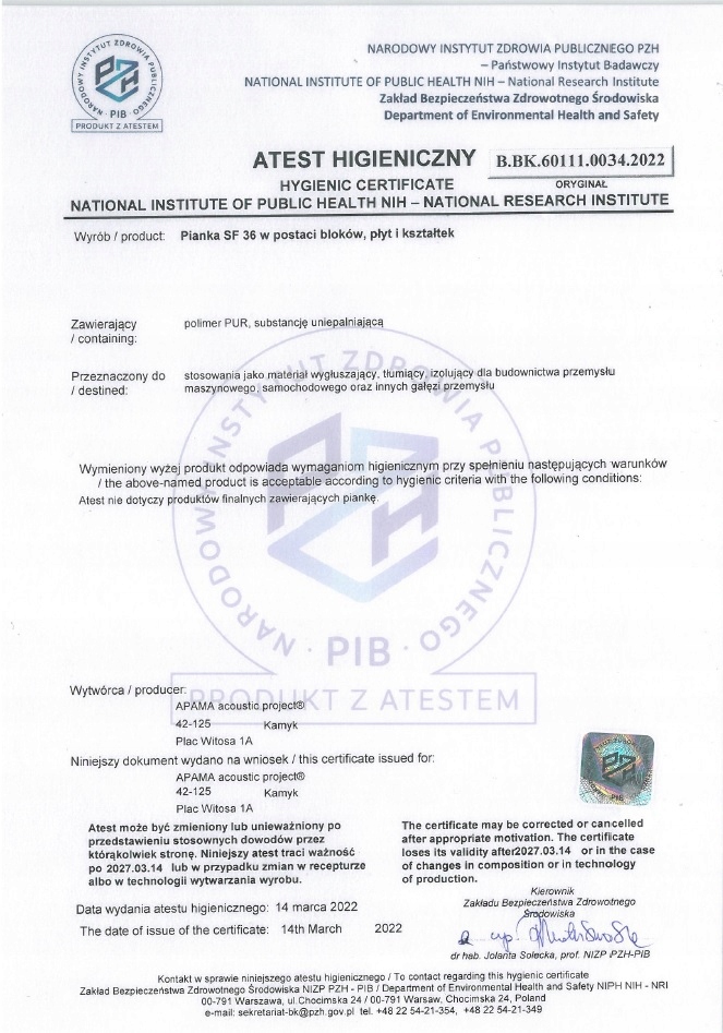 Панелі виготовлені з оригінальної вогнезахисної технічної акустичної піни SF36 з правильною комірковою структурою, стійкою до старіння та багатьох шкідливих факторів.
