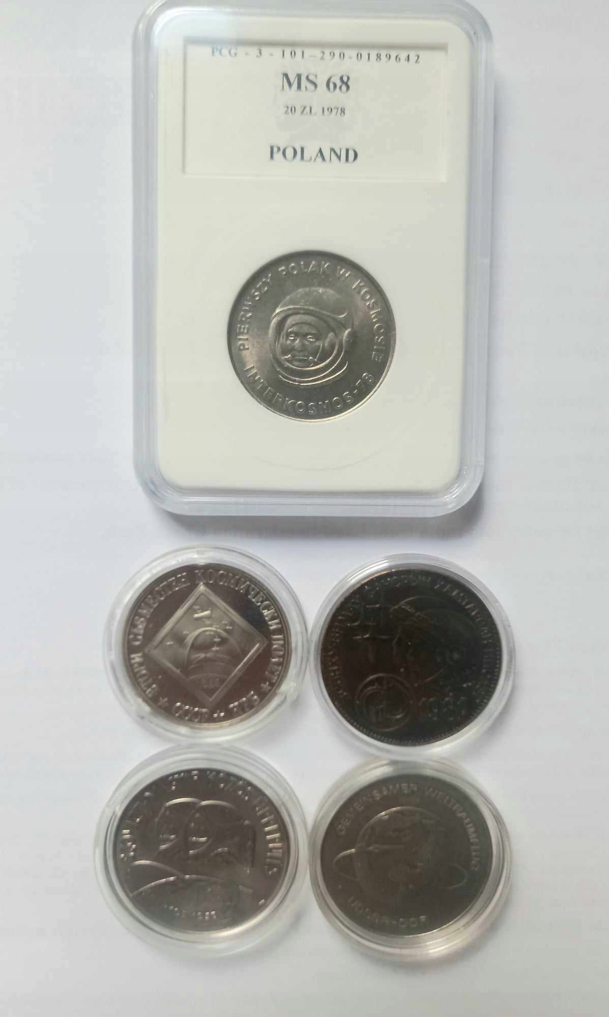 НАБІР З П’ЯТИ РІЗНИХ МОНЕТ - INTERKOSMOS ВКЛЮЧАЮЧИ 20 PLN 1978 - INTERKOSMOS - SUPER NOTA MS 68, HERMASZEWSKI, БОЛГАРІЯ, УГОРЩИНА, НДР, МОНГОЛІЯ, ЛІКВІДАЦІЯ КОЛЕКЦІЇ, РІДКІСТЬ