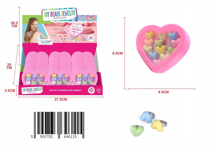 ZESTAW PIERŚCIONKÓW DLA DZIEWCZYNKI SERCE 12SZT