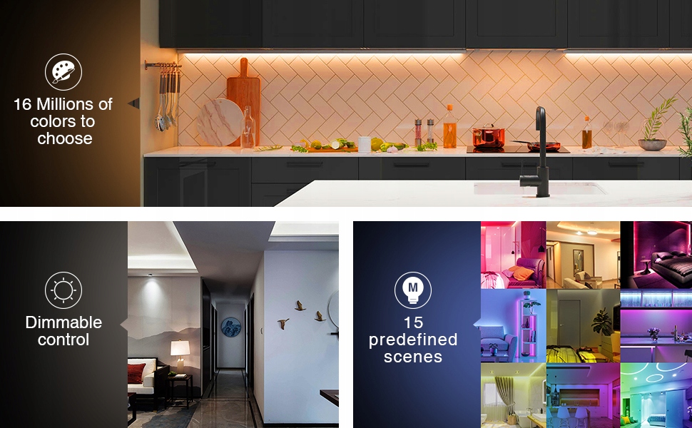 Вибір будь-який колір створюється торканням кольорового кільця, також можна освітлити або затемнити фіксований колір і програмувати за допомогою відповідних сенсорних кнопок.