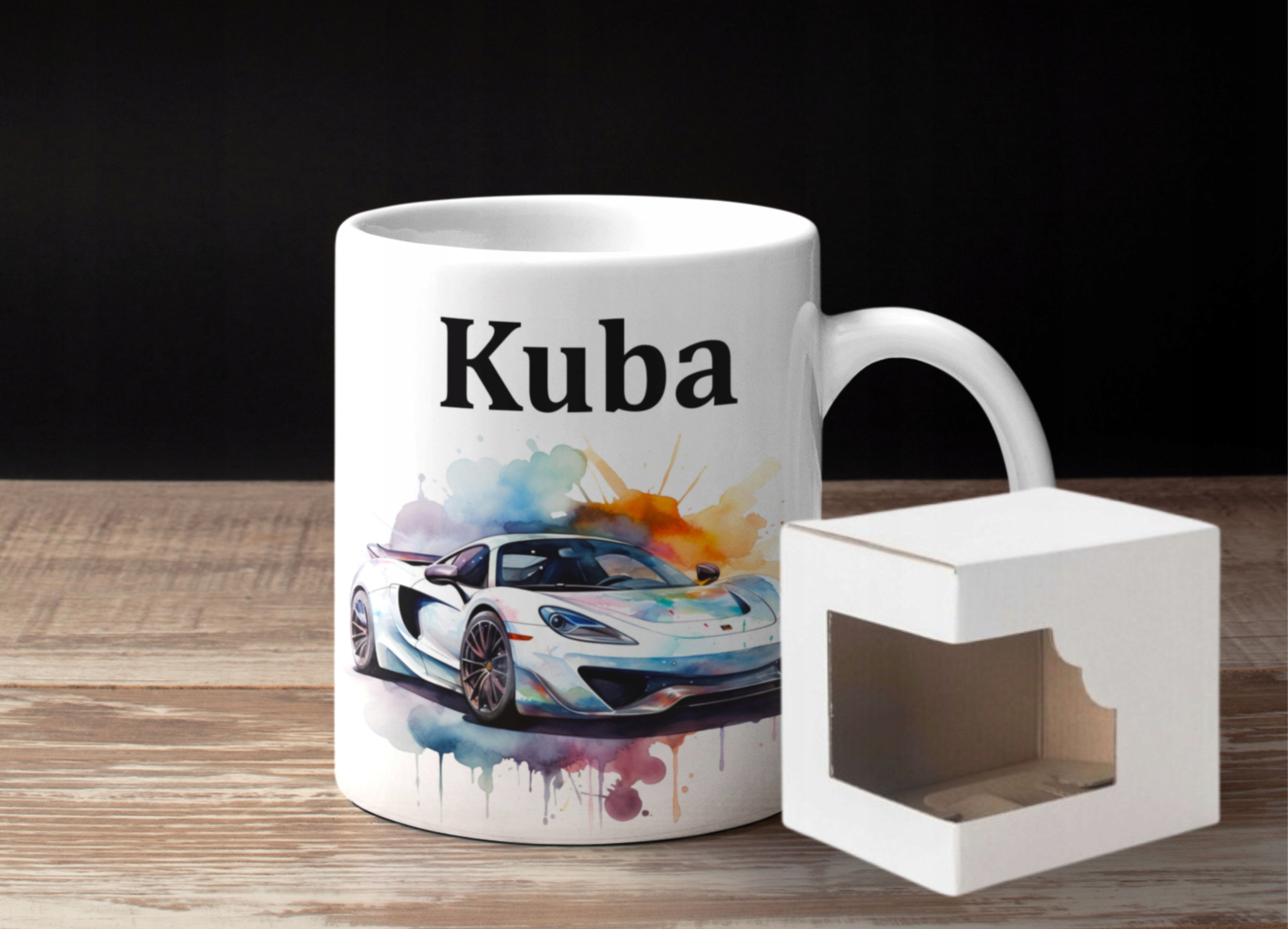 ZESTAW PODUSZKA KUBEK WOREK AUTO SPORTOWE SAMOCHÓD CAR +DOWOLNE IMIĘ