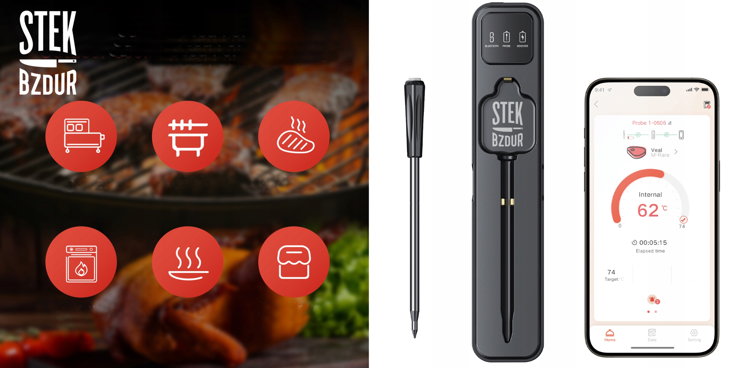 Zestaw Prezentowy na Prezent STEK BZDUR L Rękawice Szczypce Termometr BT