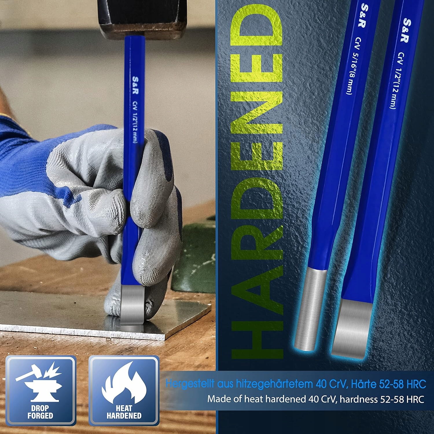 ВИСОКА ЯКІСТЬ ОБРОБКИ: Усі інструменти виготовлені з високоякісної хром-ванадієвої (Cr-V) сталі, який додатково термічно загартований і має твердість 52-58 HRC.