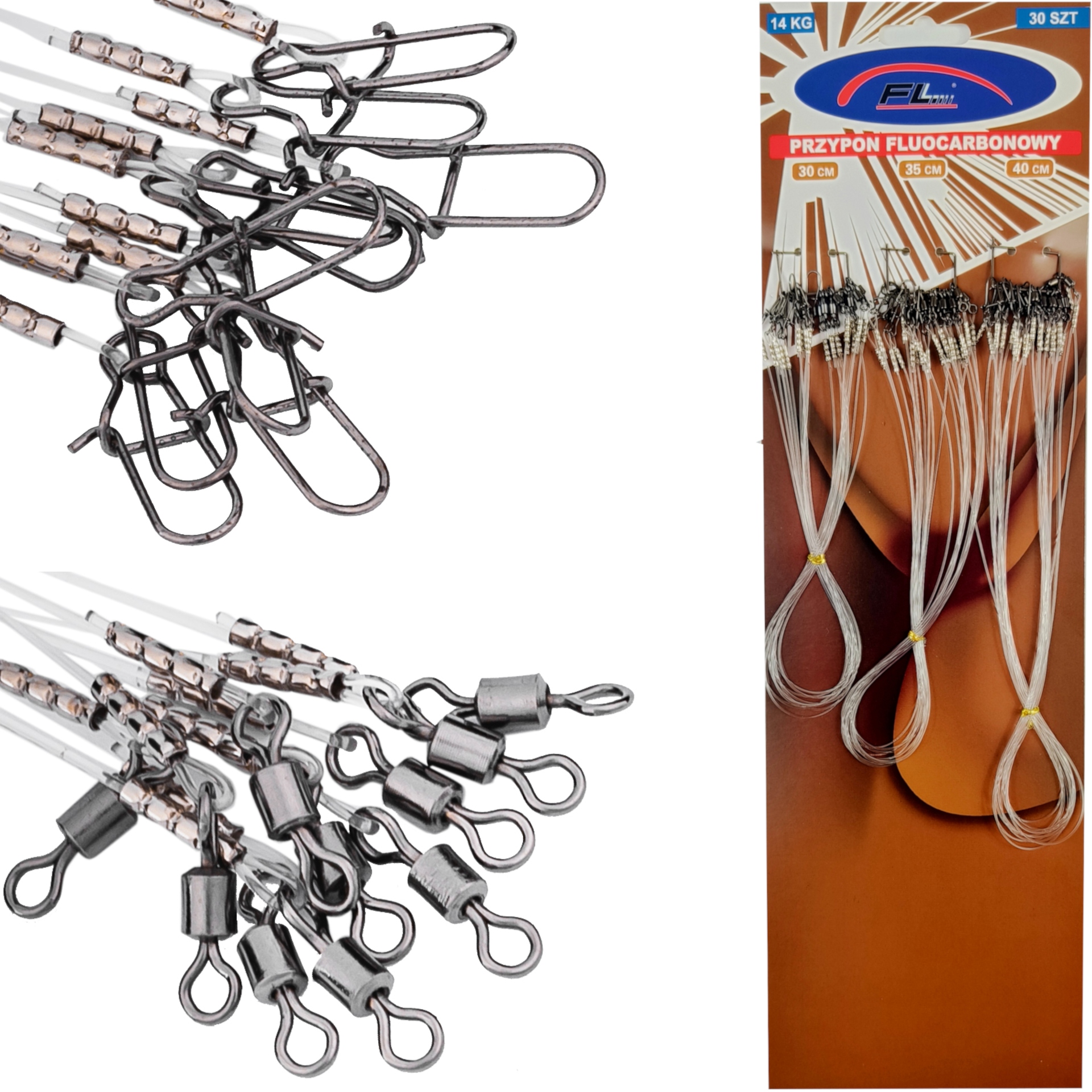 ZESTAW PRZYPONÓW FLUOROCARBON 30/35/40 cm 30 Sztuk