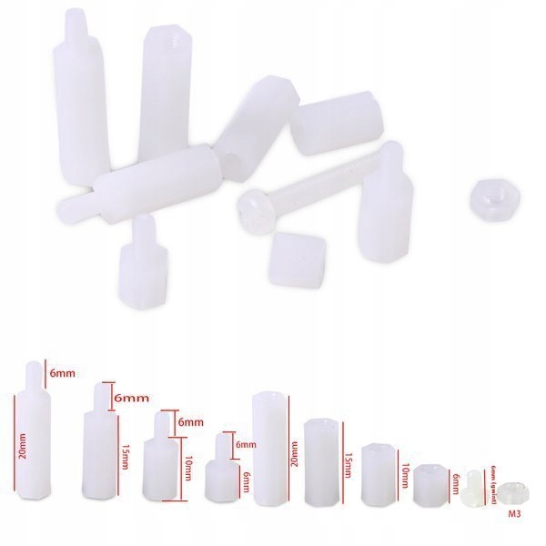 Zestaw śrub i tulei dystansowych 120 sztuk M3 5/10/15/20 nylonowe