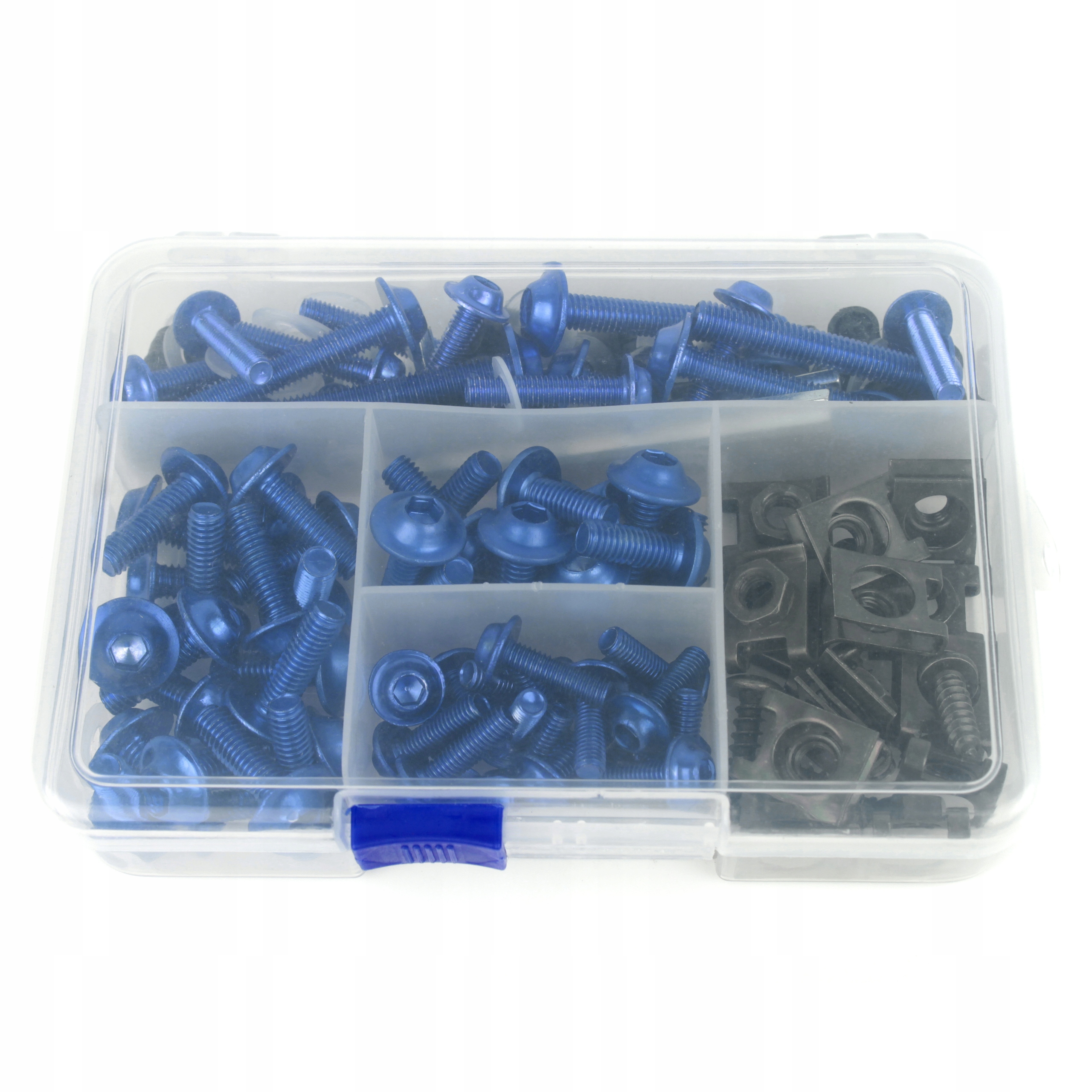 ZESTAW ŚRUB ŚRUBKI OWIEWKI MOTOCYKLOWE ALUMINIOWE NIEBIESKIE + Haftowana smycz brelok MOTO-ZONE krótka