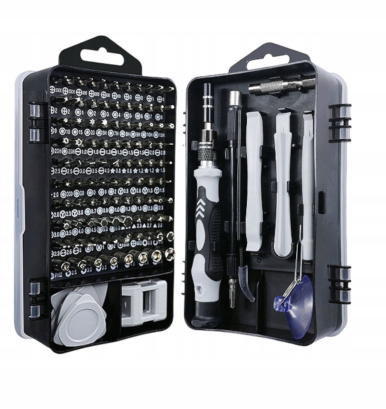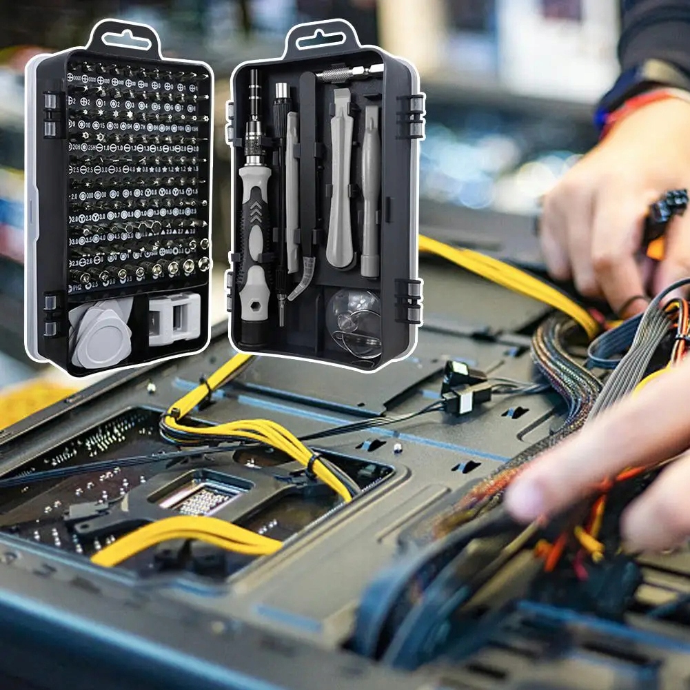 Великий набір прецизійних інструментів із до 115 елементів, 98 викруток та багато інші аксесуари для професійного ремонту. Створено длявідкриття або ремонту телефонів, планшетів, годинників, навігацій, фотоапаратів, ноутбуків та всієї іншої побутової техніки