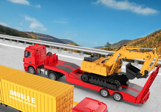Набір вантажівки на дистанційному керуванні з напівпричепом та екскаватора в масштабі 1:26