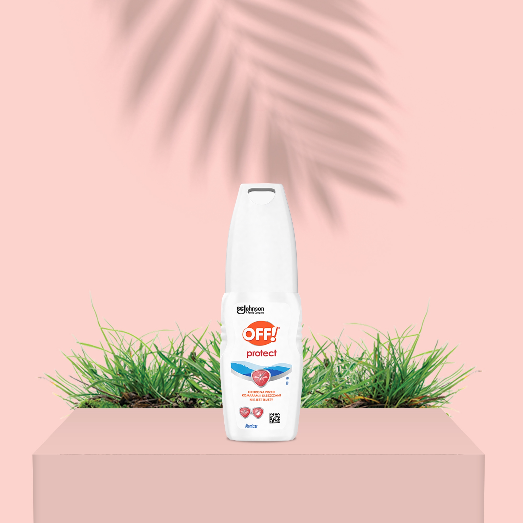 ВИМКНЕНО! Protect atomizer – це спрей від комах, який захищає вас і вашу родину від комарів і кліщів протягом 3 годин.