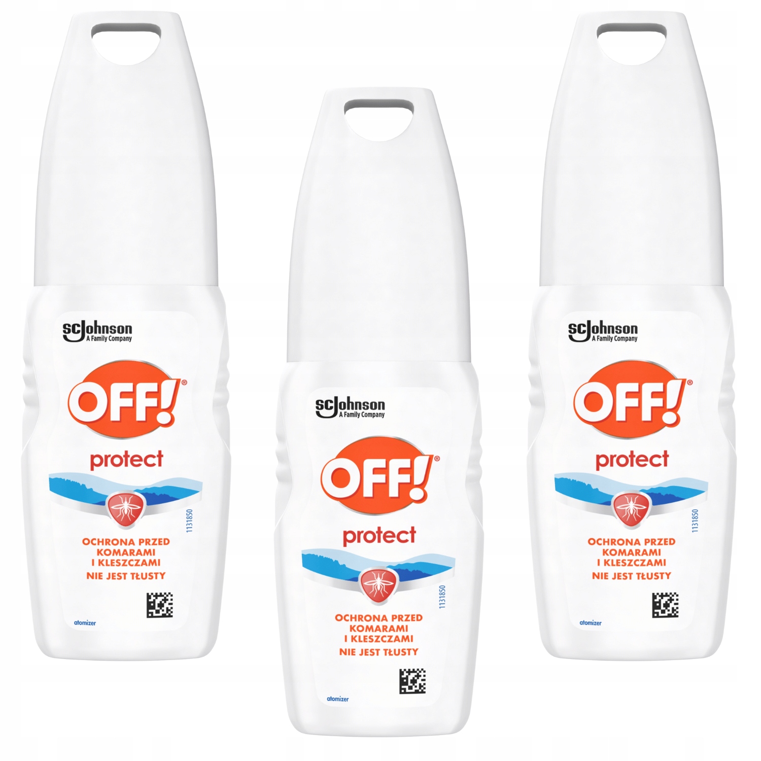 ZESTAW SPRAY NA KOMARY I KLESZCZE OFF! PROTECT ATOMIZER 3X100ML 3H 7% DEET