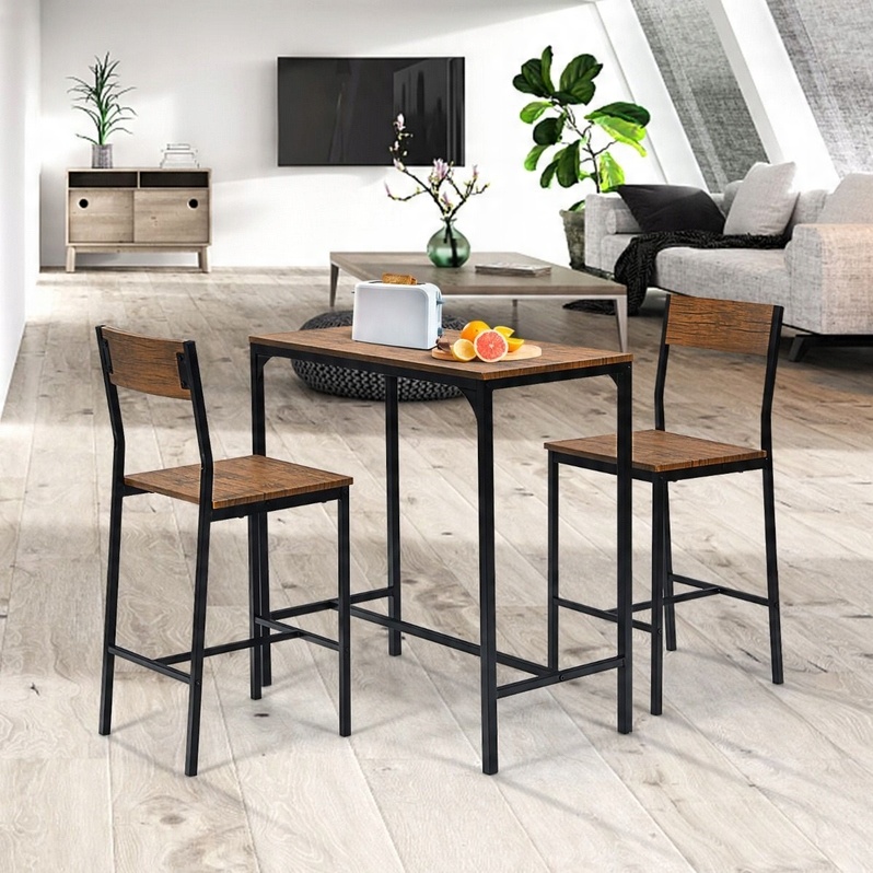 Zestaw Stół barowy + 2 krzesła z oparciem krzesła barowe Bistro Industriany