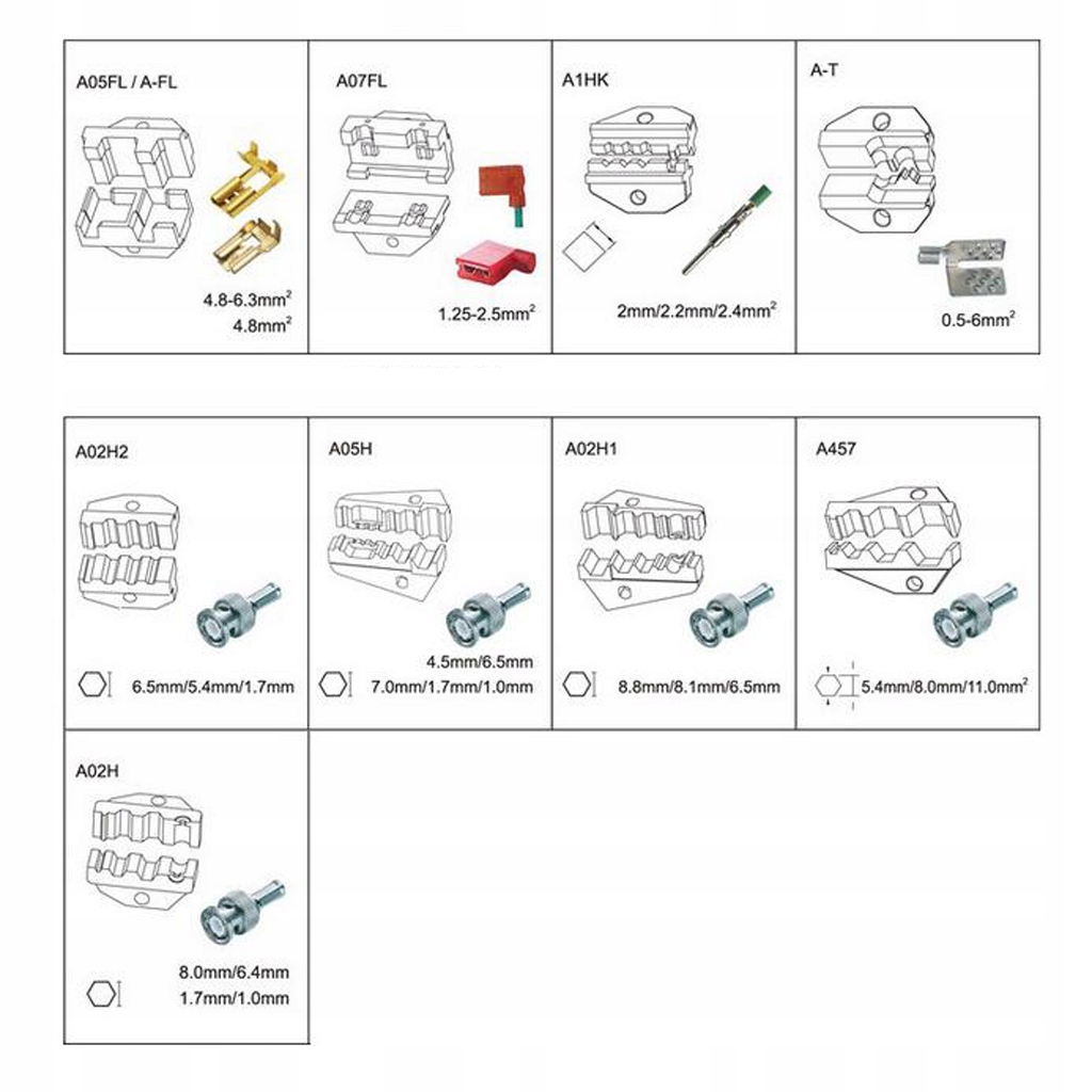 Zestaw szczypiec zaciskowych Zestaw matryc zaciskowych Stal A FL A05FL A-FL