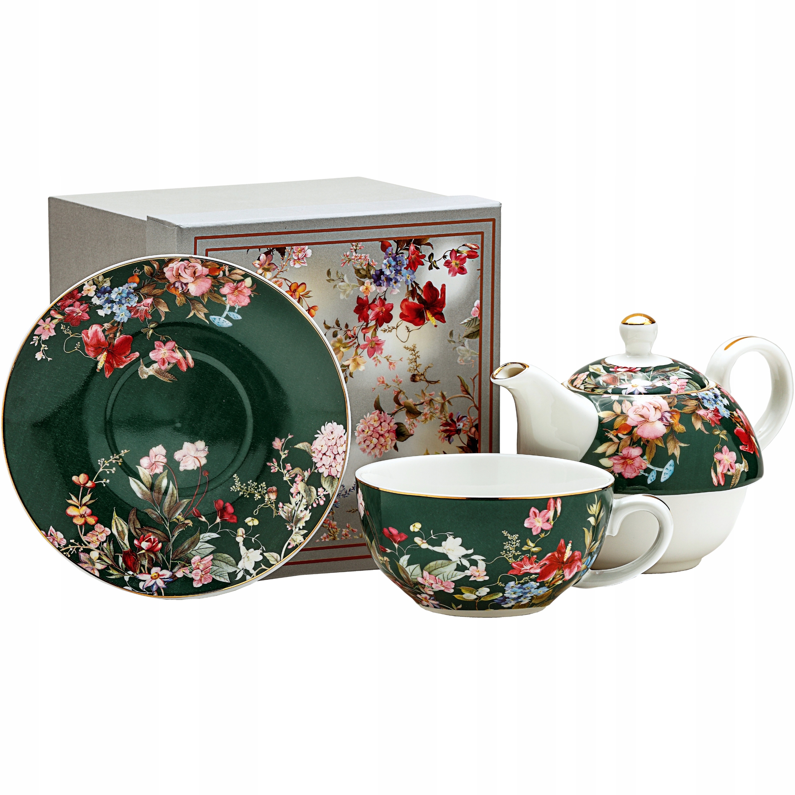 Zestaw TEA FOR ONE Porcelanowy Dzbanek 450 ml z filiżanką 250 ml - KWIATY