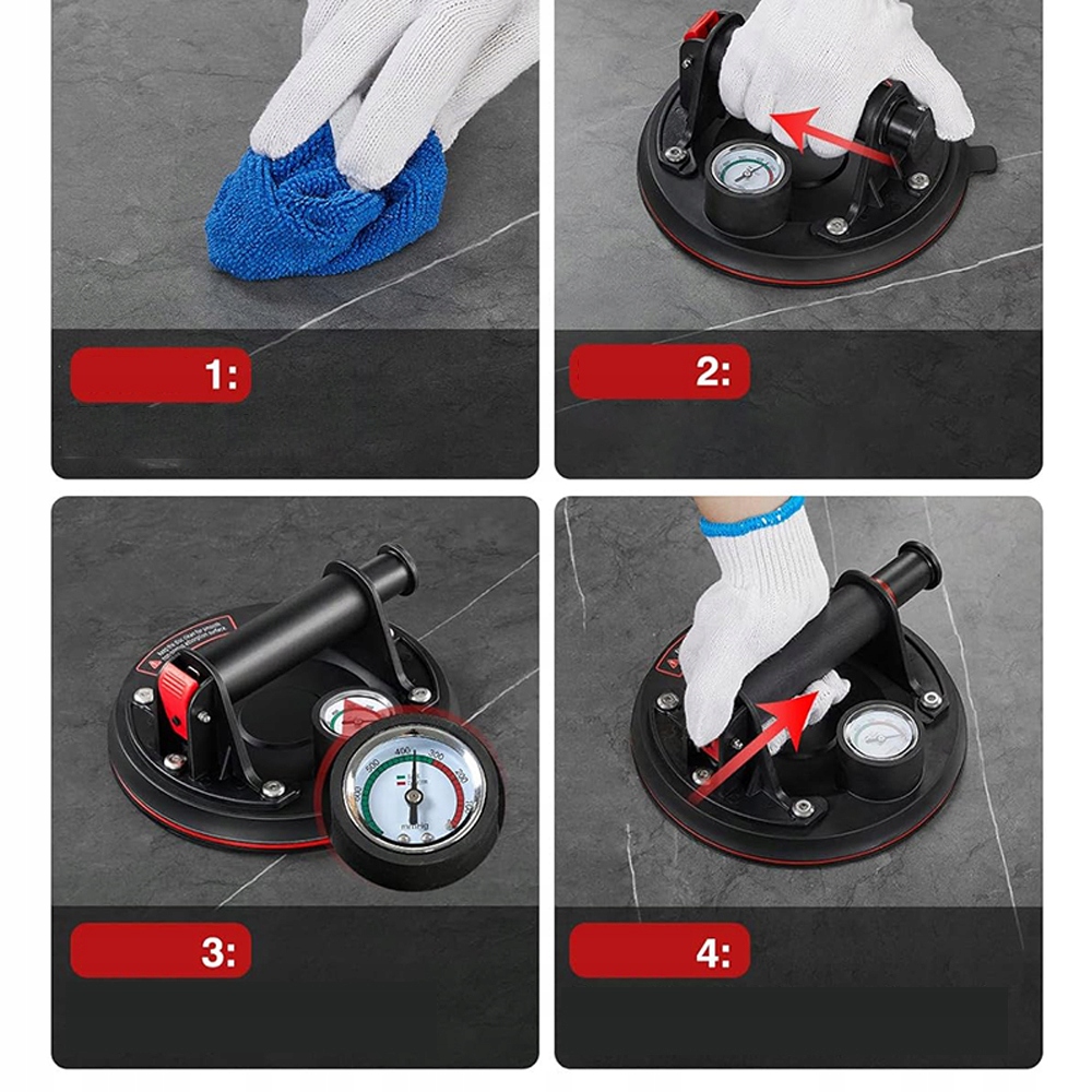 ZESTAW UCHWYT PRZYSSAWKA PRÓŻNIOWA 8" DO PŁYTEK Z POMPKĄ MANOMETR 200KG