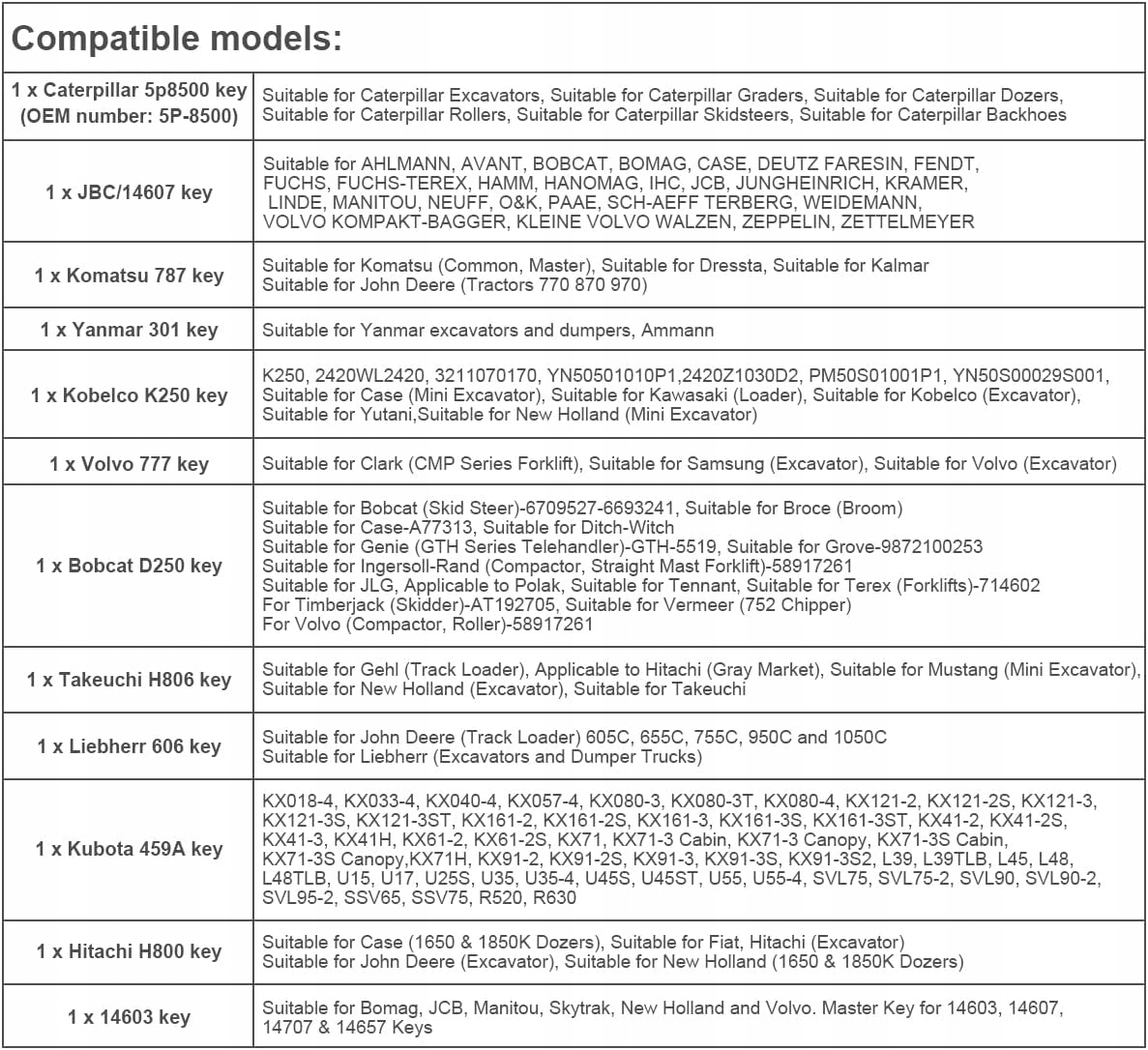 JCB, 14603, 14607, Kobelco, Yanmar, Bobcat, Liebherr та інша будівельна техніка та побутова техніка.