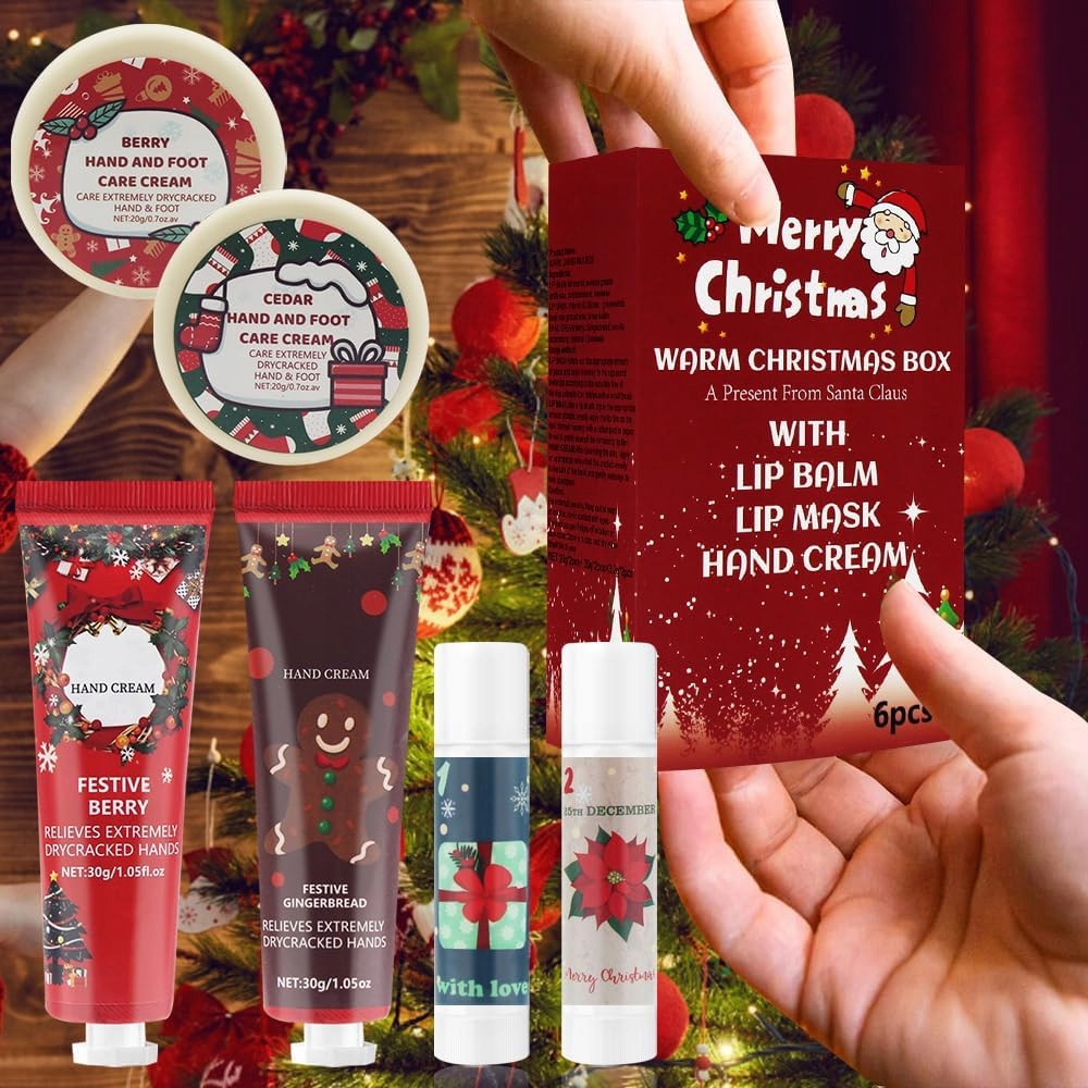 ✅ РІЗДВЯНИЙ ПОДАРУНКОВИЙ НАБІР - КРЕМИ ДЛЯ РУК НІГ ГУБ 6X ШТ ПОДАРУНОК ДІДА МОРОЗА