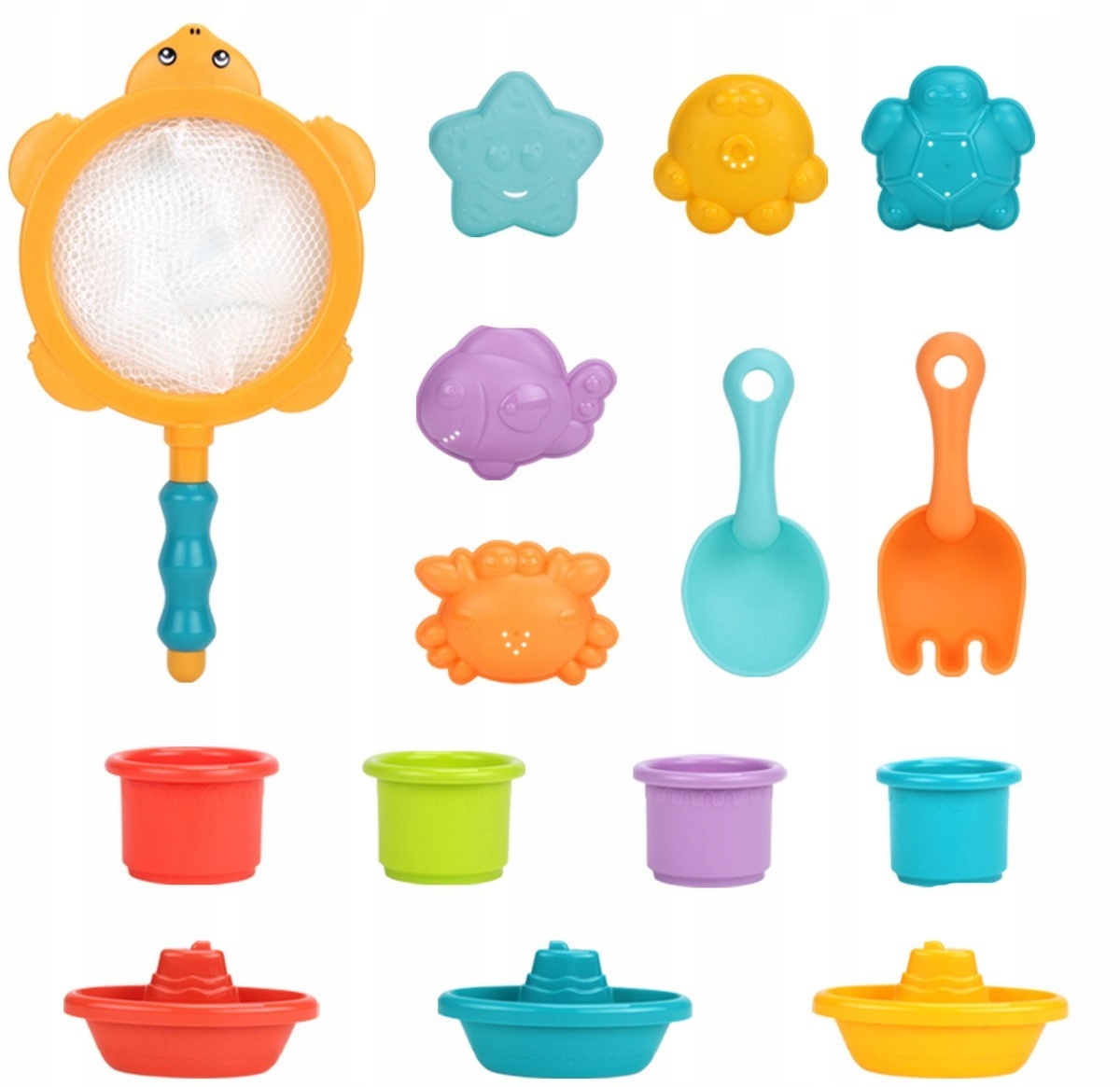 ZESTAW ZABAWEK Z SIATKĄ ŻÓŁW do KĄPIELI, PIASKU, NA BASEN, PLAŻĘ 15 elem.