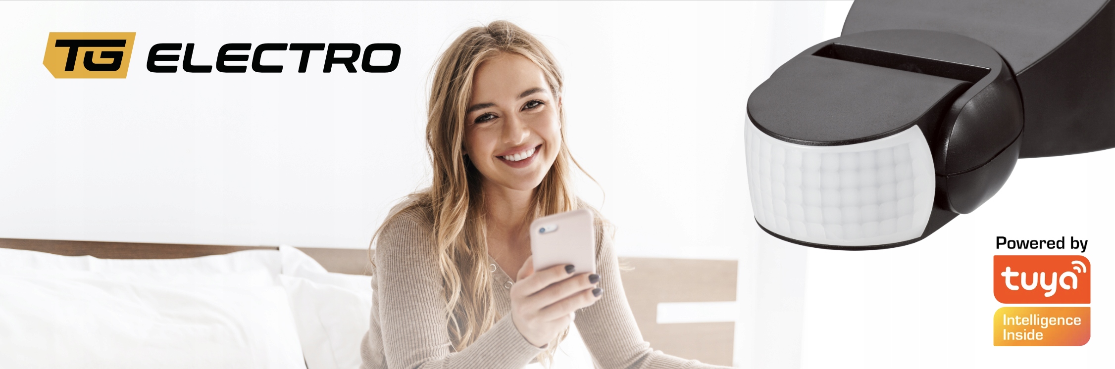 PIR датчик руху, 180°, 1200 Вт, IP65, поверхневий, WIFI, TUYA, білий