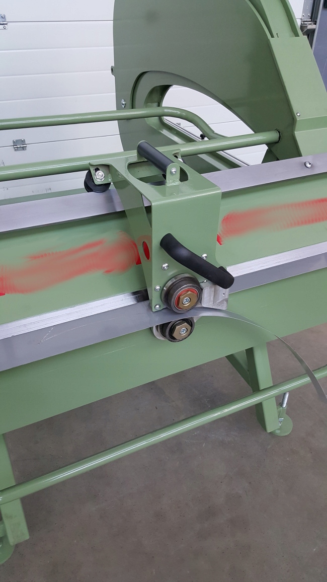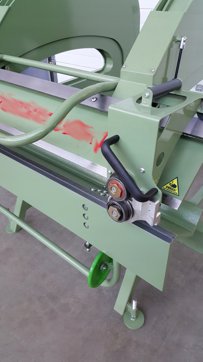 - МАГНІТНА НИЖНЯ БАРКА - (Додаткове обладнання)- Магніти, встановлені на нижній балці, «утримують» лист в заданому положенні. Завдяки їм вузькі смуги листового металу не випадають з верстата.