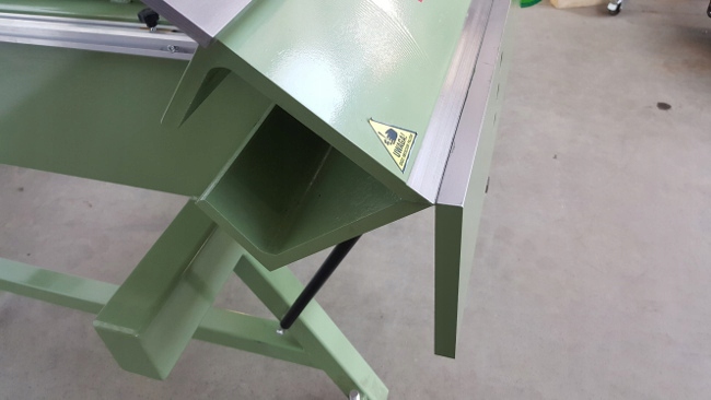 - ЗАДНІЙ СТІЛ, ОБЛАДНАНИЙ ОПОРОМ (1000 мм) - дозволяє розміщувати металевий лист і вільно його переміщати. Його можна використовувати як місце для укладання листів металу. Оснащений шкалою, яка дозволяє точно позиціонувати зігнутий і розрізаний листовий метал.