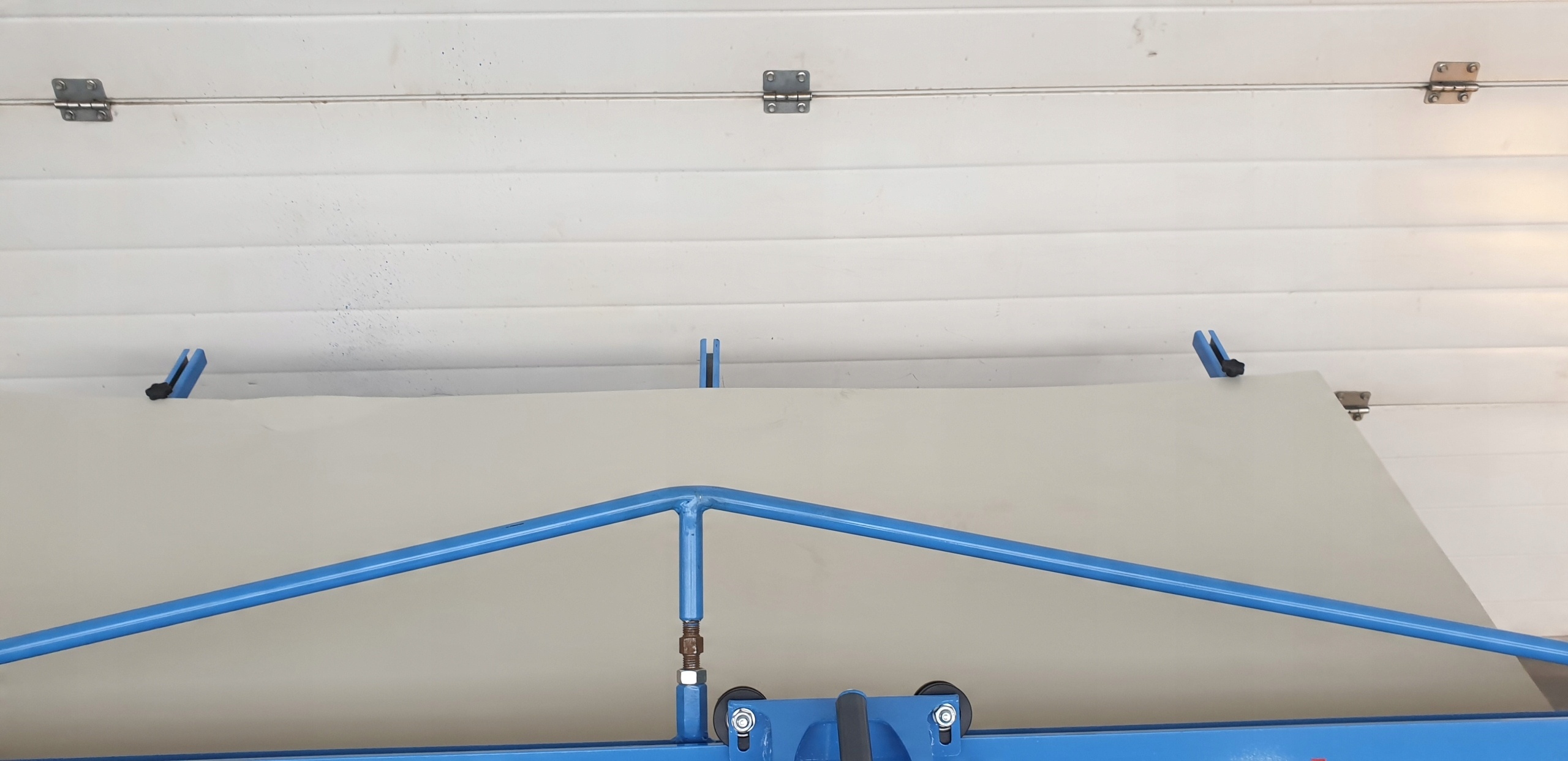 - Машина нашого виробництва відкривається за допомогою одного важіль, який піднімає всю верхню балку на 65 мм вгору. Але інші верстати, наприклад західних марок і китайські, відкриваються двома ручками, тобто окремо з лівого і окремо з правого боку, що значно ускладнює роботу листообробника!!!