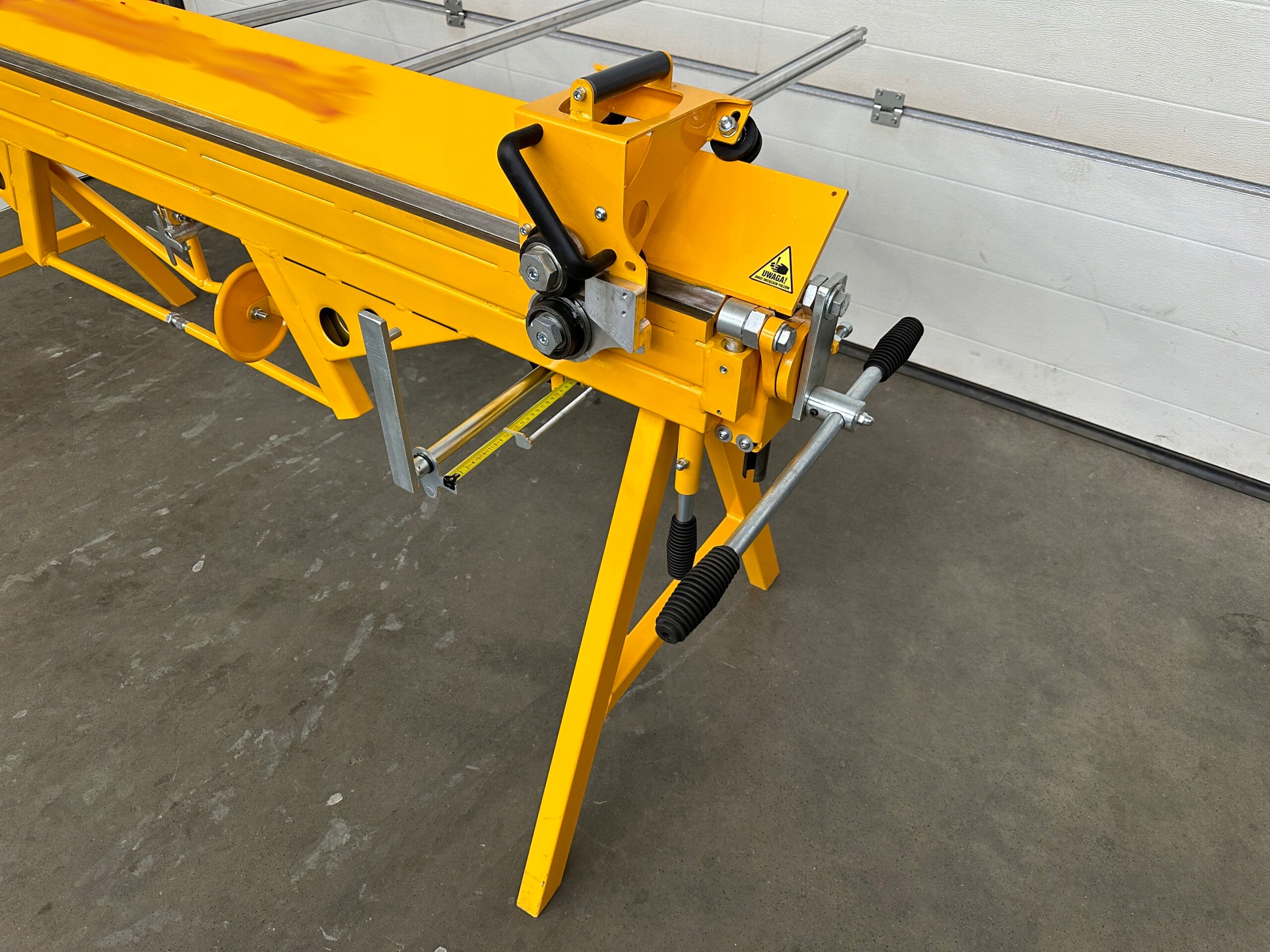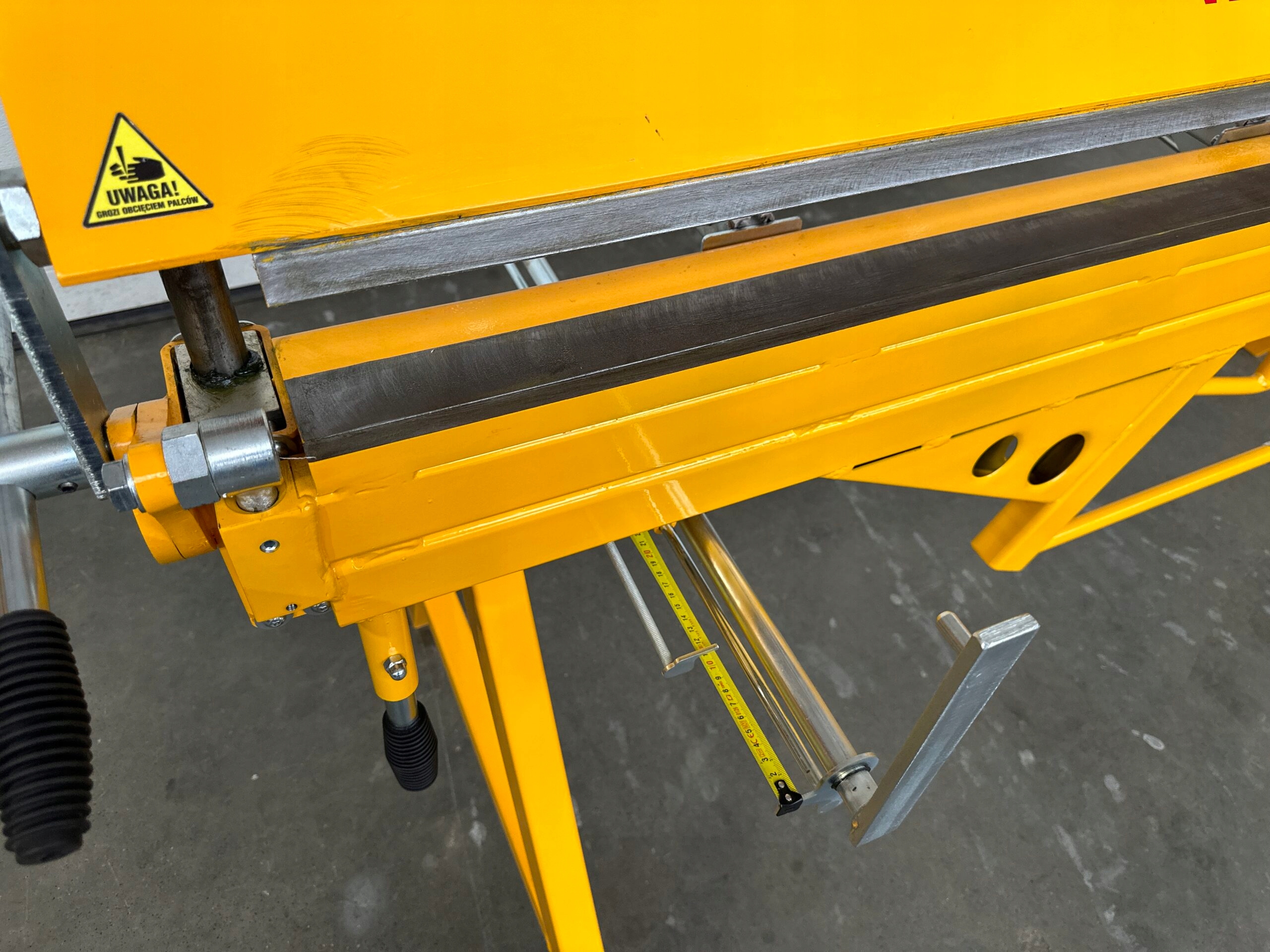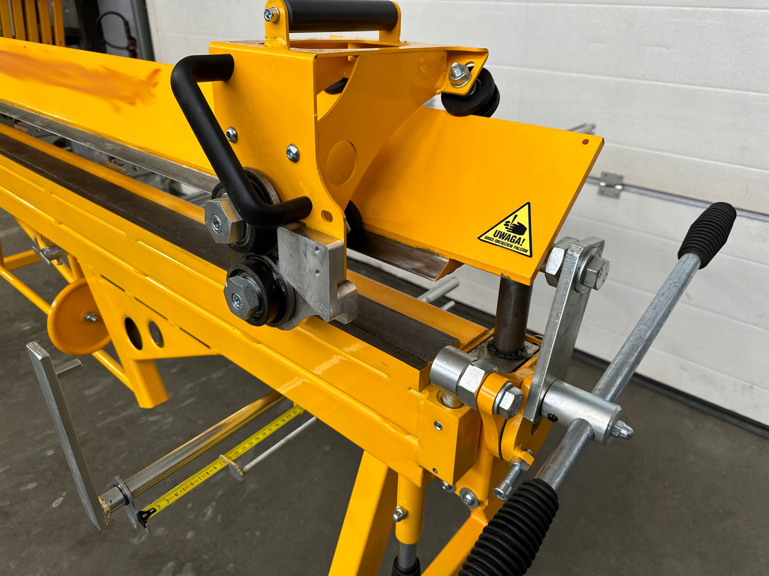 Ручний згинальний верстат призначений для ручного різання та згинання листового металу із збереженням заданих виробником параметрів. Виготовлений зі сталі найвищої якості, пофарбований порошковою фарбою. Фурнітура та дрібні деталі захищені від корозії цинком. Згинальний верстат сконструйований таким чином, що є можливість виправляти окремі елементи. Така конструкція дозволила забезпечити дуже високу жорсткість згинального верстата. Згинальний верстат також має кілька регулювань механічних елементів, таких як: кут нахилу притискної балки, сила тиску притискної балки та симетричне положення балки відносно нижньої балки. Під час різання листового металу циркулярний ніж може залишатися в напрямних на краю згинального верстата, не відкладаючи його. Всі елементи конструкції листозгинального верстата відрегульовані і налаштовувати їх не потрібно.