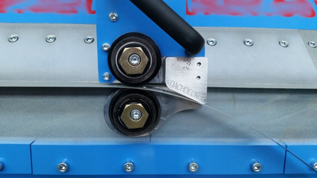 - МАГНІТНА НИЖНЯ БАРКА – (Додаткове обладнання) - Магніти, встановлені на нижній балці, «утримують» простирадло в заданому положенні. Завдяки їм вузькі смуги листового металу не випадають з машини.