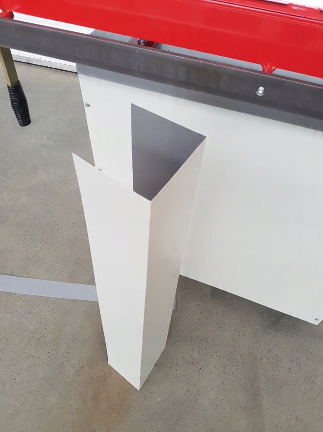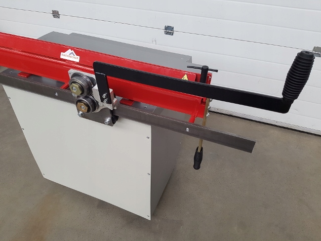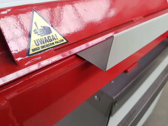 - ЗАДНІЙ СТІЛ, ОБЛАДНАНИЙ ОПОРОМ (1000мм) - (Додаткове обладнання) Дозволяє розміщувати листовий метал і вільно його переміщати. Його можна використовувати як місце для укладання листів металу. Оснащений шкалою, яка дозволяє точно позиціонувати зігнутий і розрізаний листовий метал.