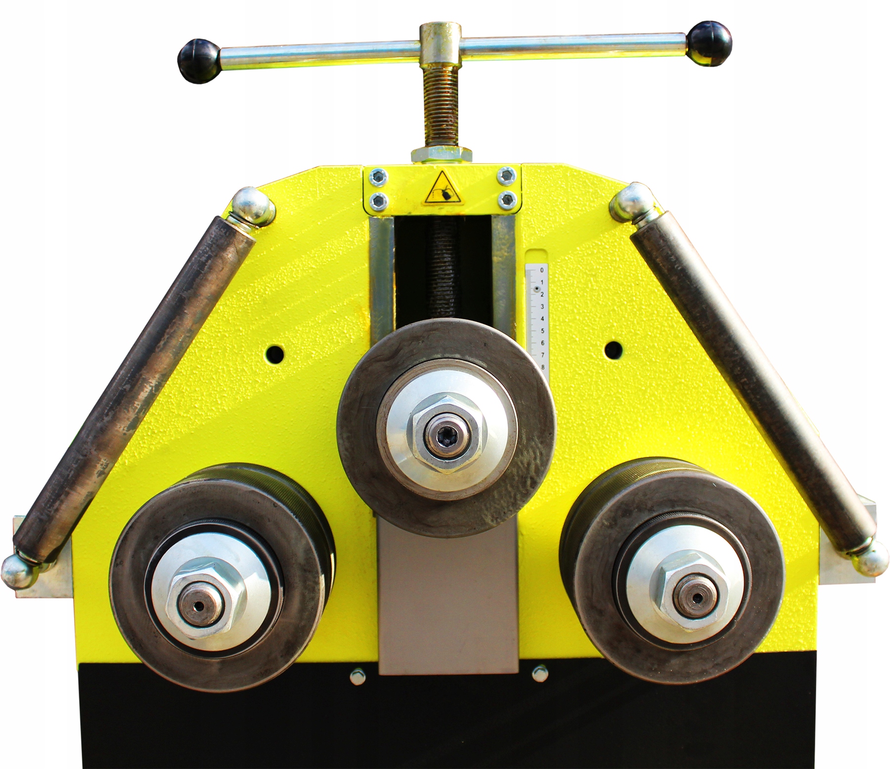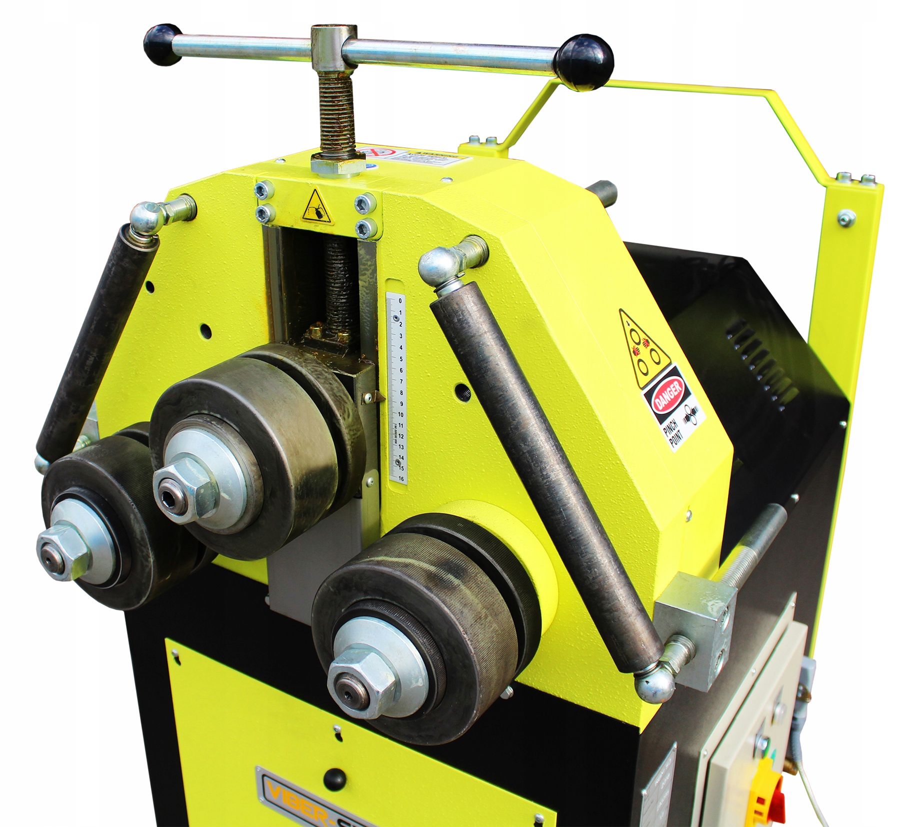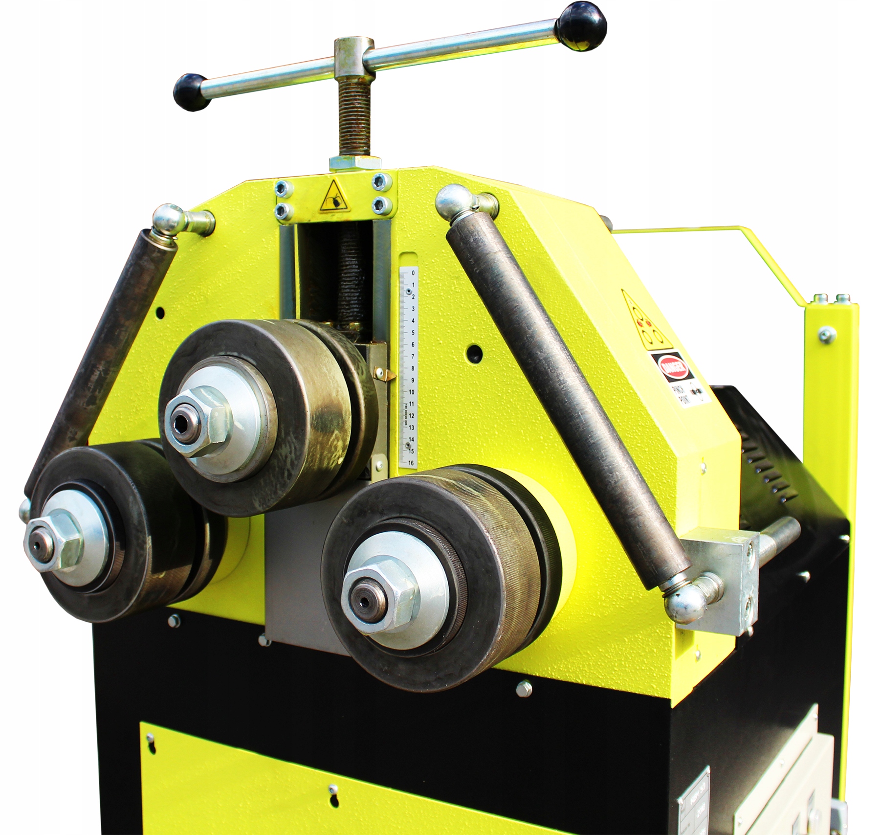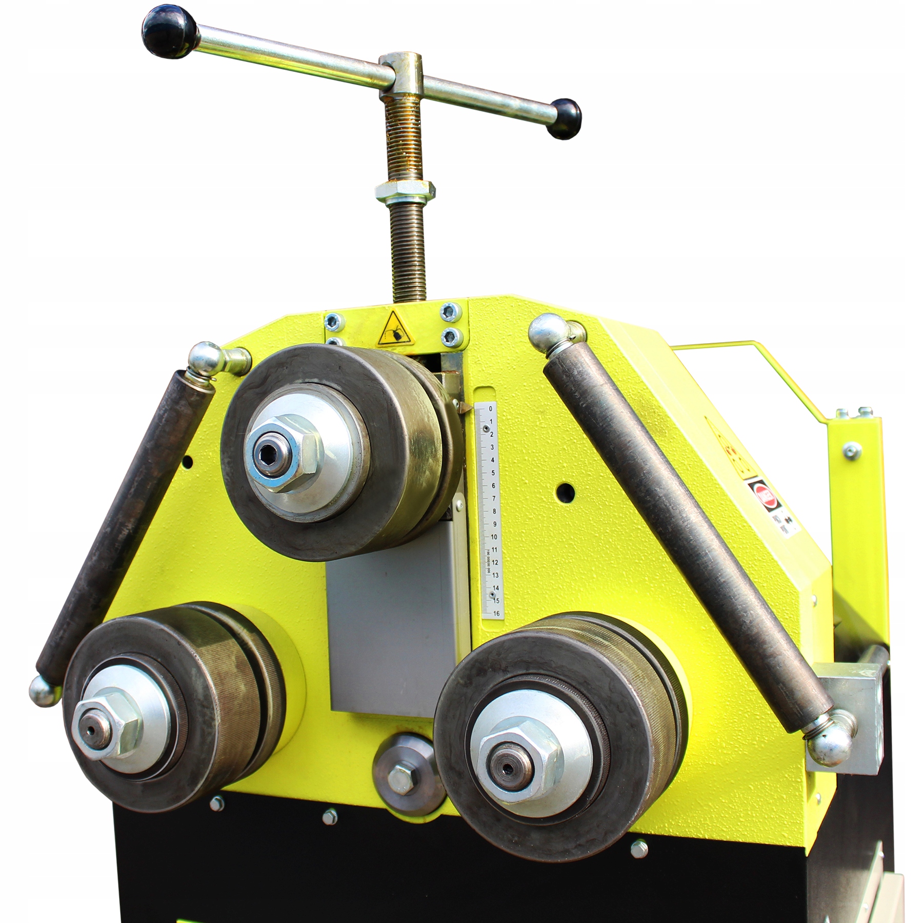 Ця машина додатково оснащена механічним тиском верхнього ролика, що дає нам чудове рішення для згинання дуг, кіл, спіралей тощо.