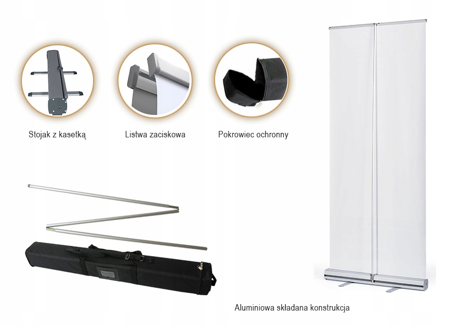 Рол-апи (портативні виставкові системи) - рекламні стенди, які найчастіше використовуються під час ярмарків або конференцій. Це зручний, надзвичайно елегантний і сучасний вид реклами для Вашої компанії. Вони складаються зі спеціальної касети з рухомою системою, алюмінієвої рами, натяжного механізму, затискної планки та стріли. Крім того, рулон має спеціальну кришку, що дозволяє зручно та безпечно транспортувати нашу рекламу. Зміст реклами надруковано на спеціальному матеріалі, який є дуже міцним.