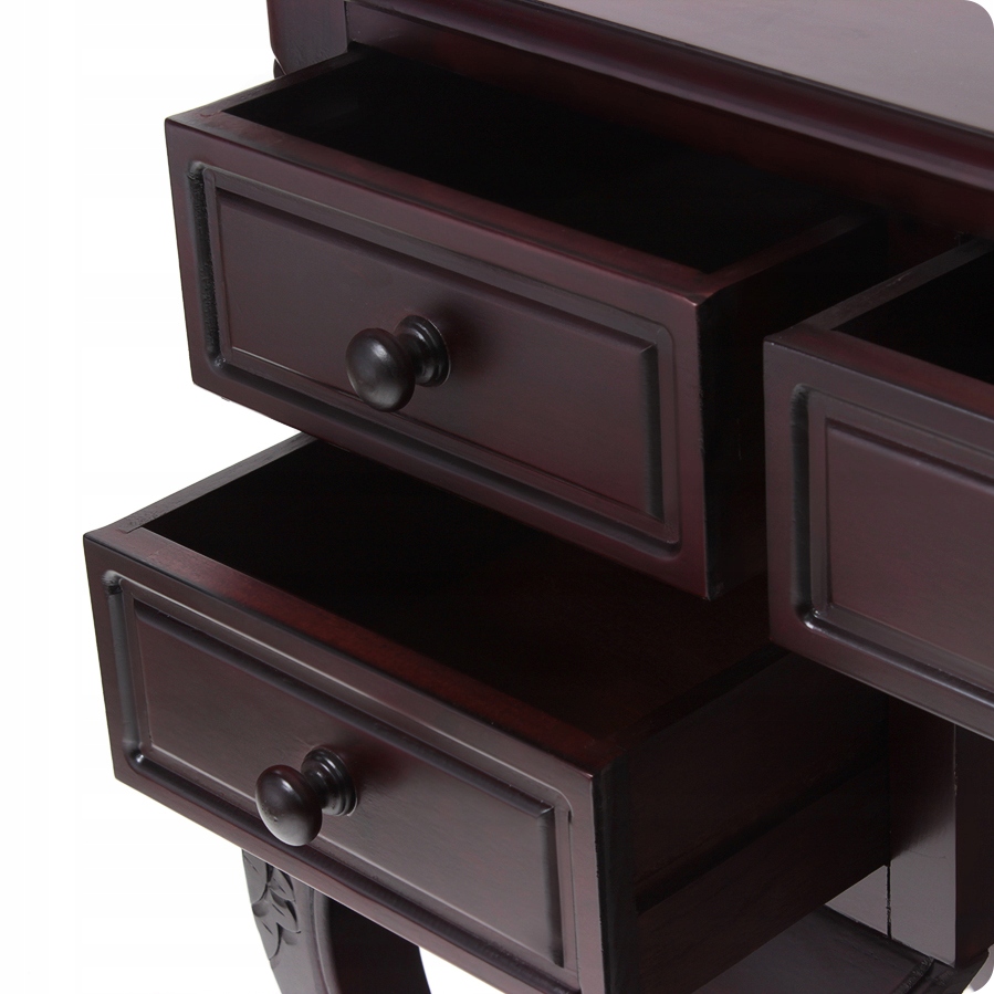 Предметом цієї пропозиції є один із наших найпопулярніших столів у темному кольорі червоного дерева! Меблі мають велику стільницю і п'ять містких ящиків для документів та інших важливих речей. На кутах столу можна побачити унікальне різьблення, але справжню майстерність демонструють ніжки Ludwik! Елегантний зовнішній вигляд, а також виготовлений вручну з добірної деревини означає, що наш стіл не тільки виконуватиме свою основну роль, але, безсумнівно, додасть шарму будь-якому офісу! Наостанок варто додати, що він має декорації по всій поверхні, що робить його двостороннім.